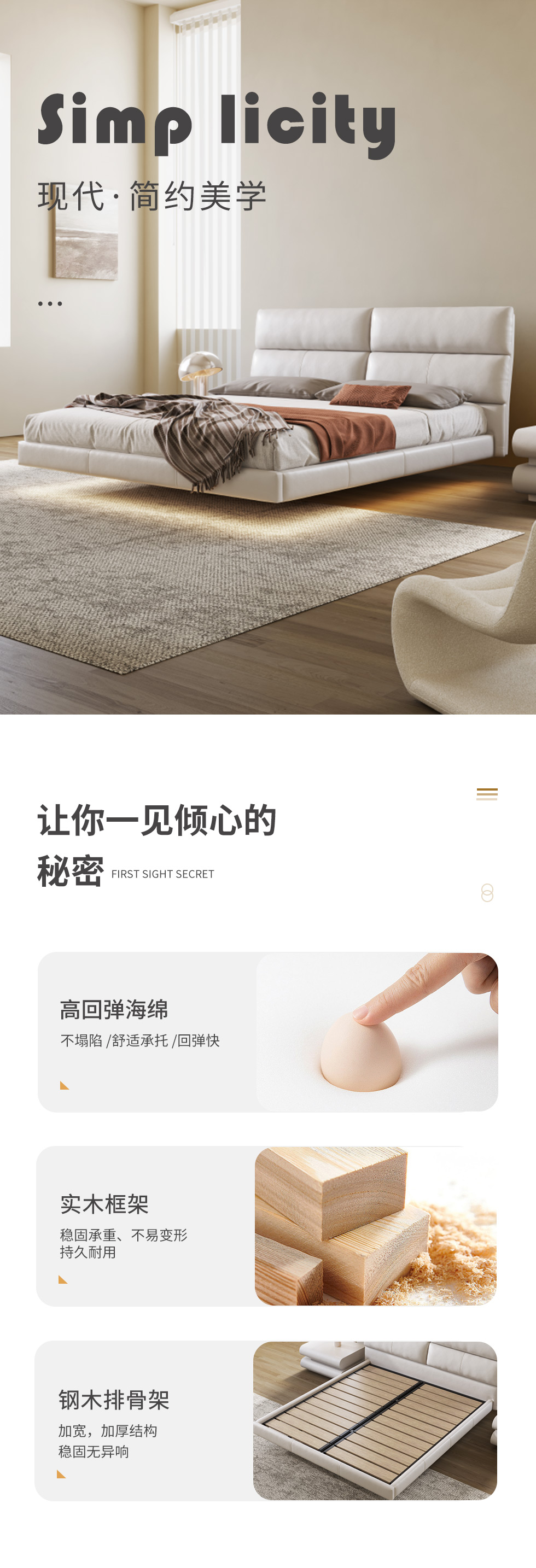 云端 奶油风 超纤皮+蓬松羽绒+镀金实木 米白色 1.8米床¥5233