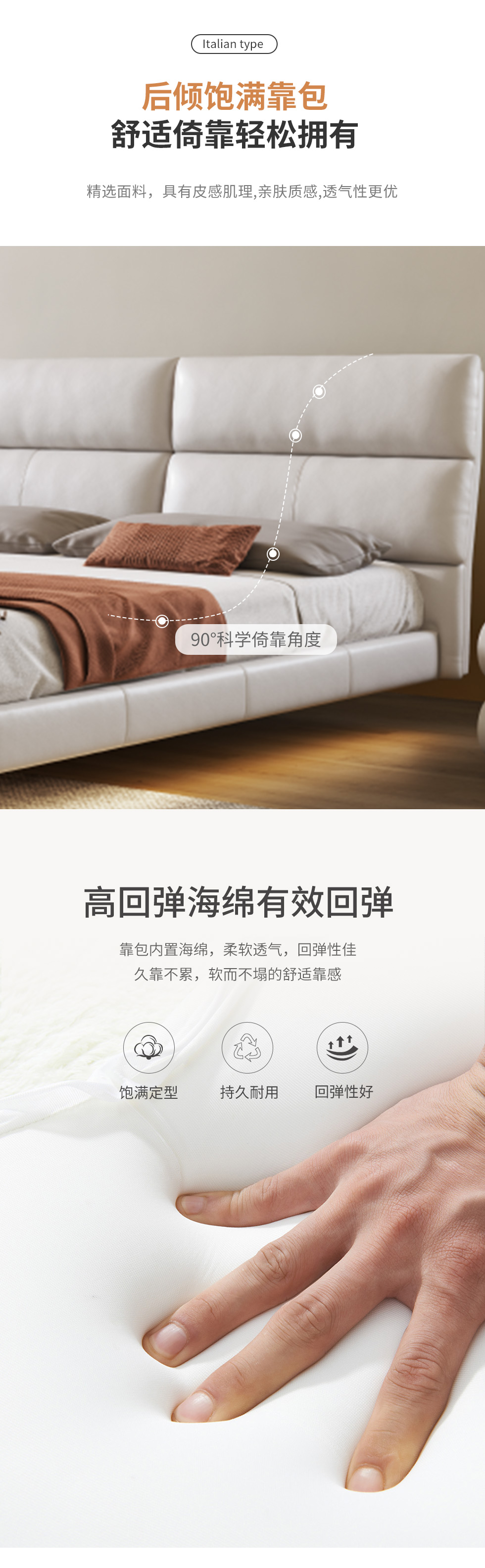 云端 奶油风 超纤皮+高密度海棉 米白色 1.8米床