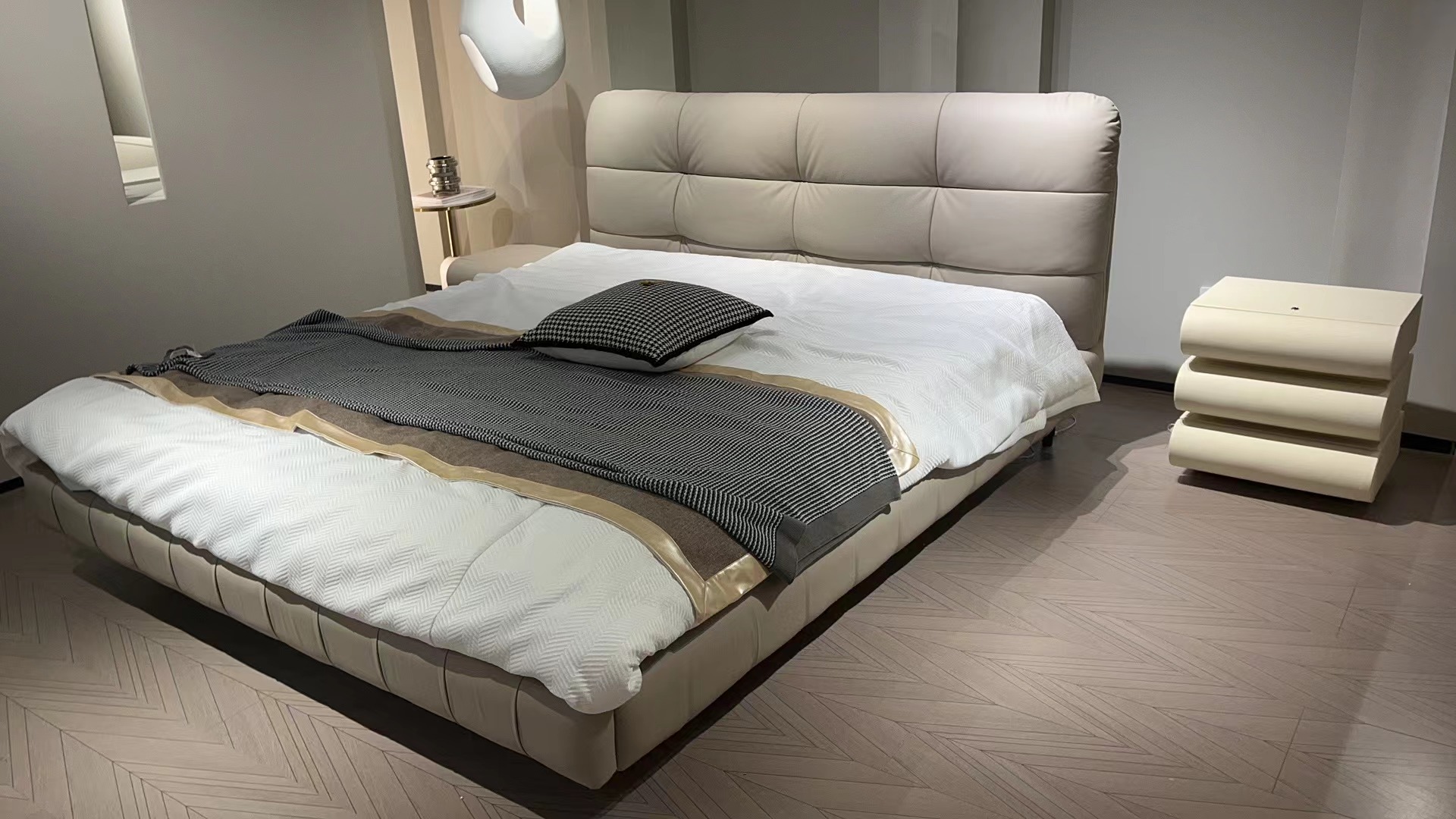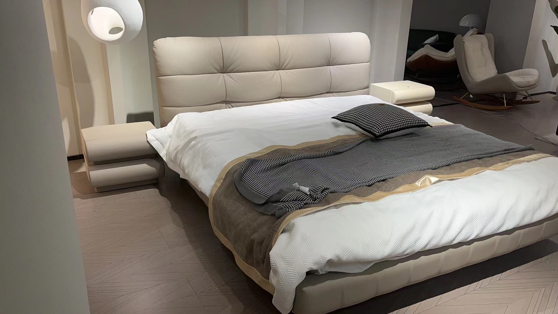 云端 奶油风 超纤皮+蓬松羽绒+镀金实木 米白色 1.8米床¥5233