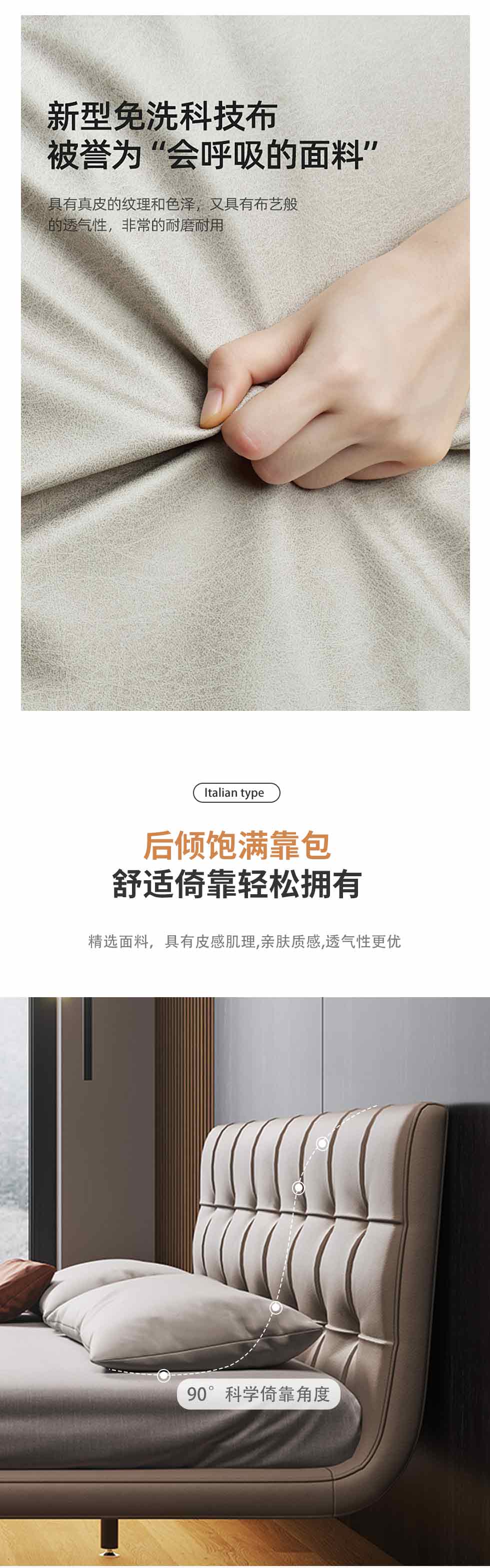 云端 奶油风 超纤皮+高密度海棉 米白色 1.8米床