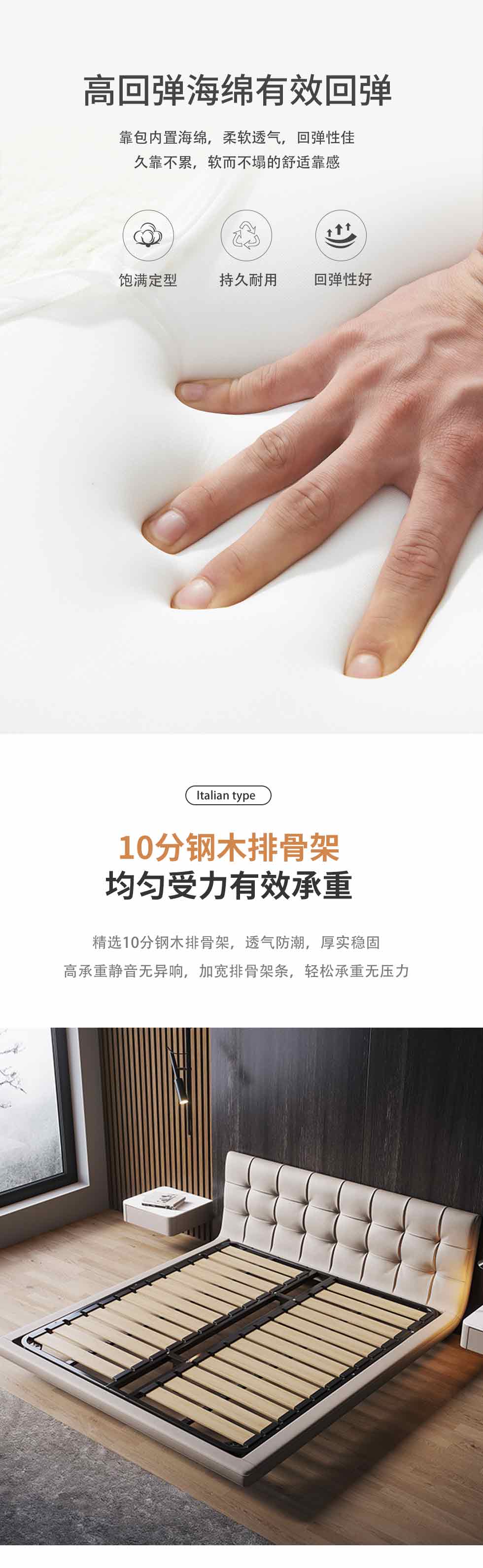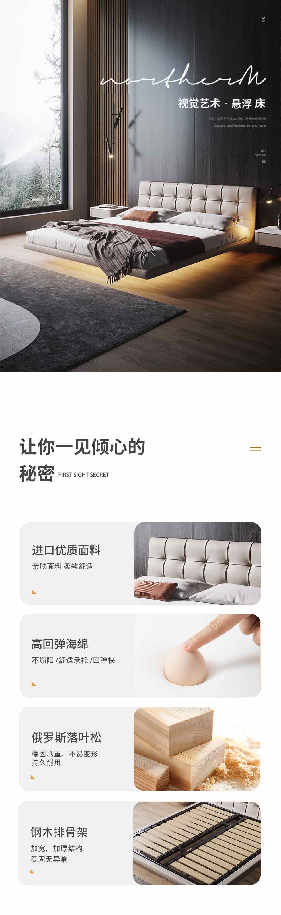 云端 奶油风 超纤皮+高密度海棉 米白色 1.8米悬浮床¥5098
