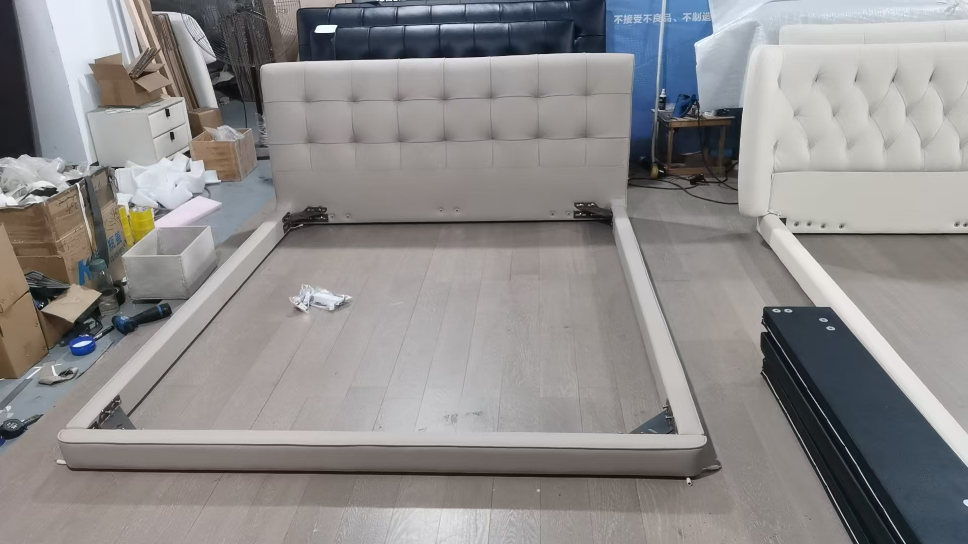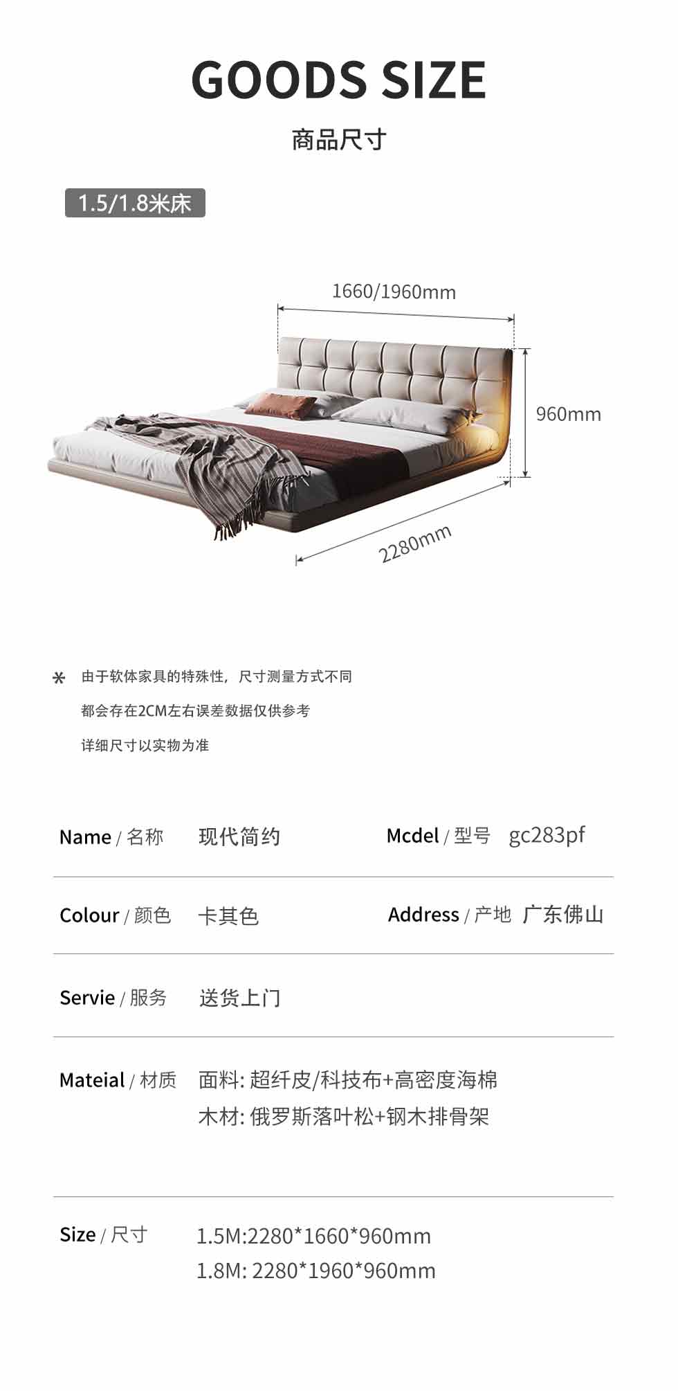 云端 奶油风 超纤皮+钢木排骨架 卡其色 1.8米悬浮床