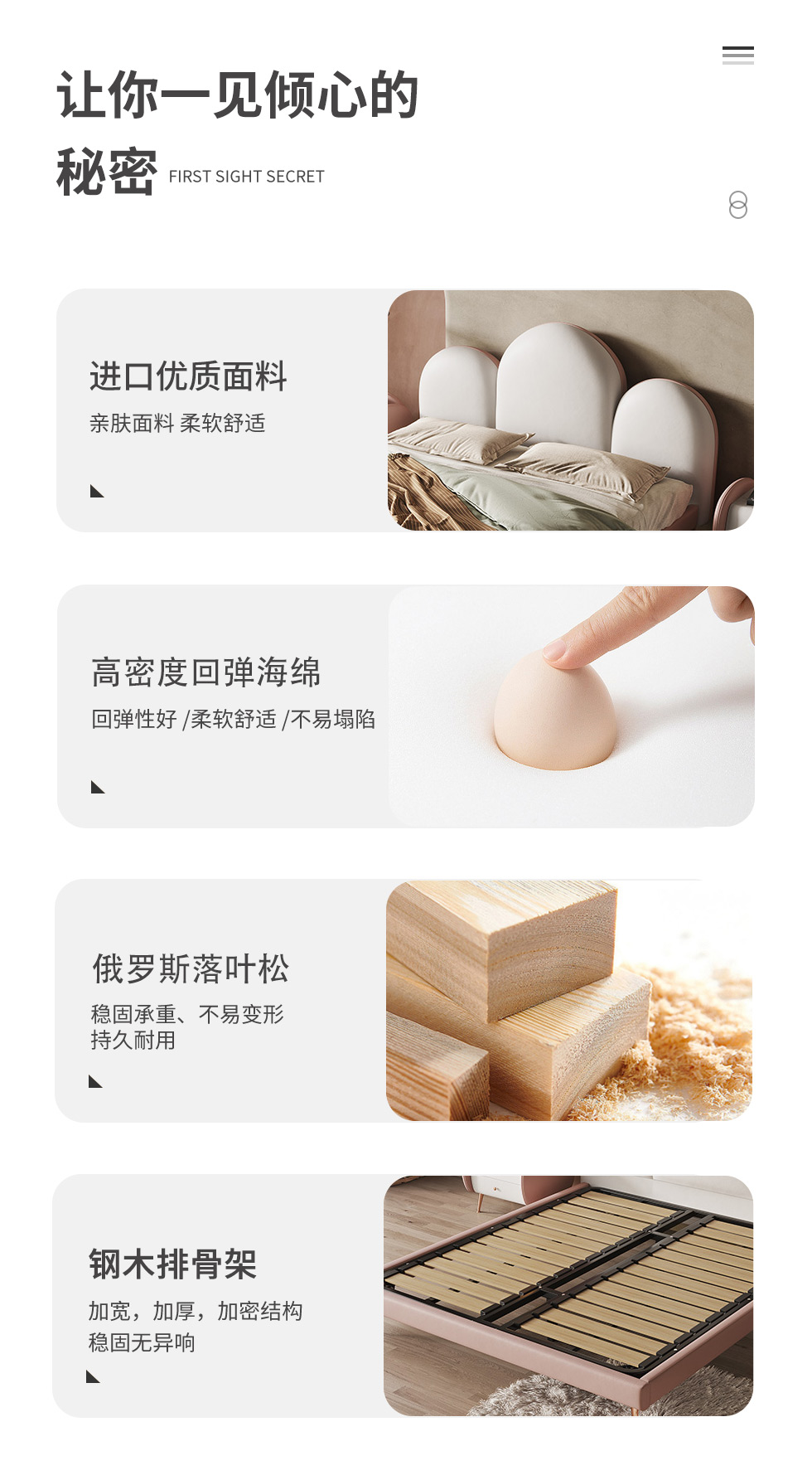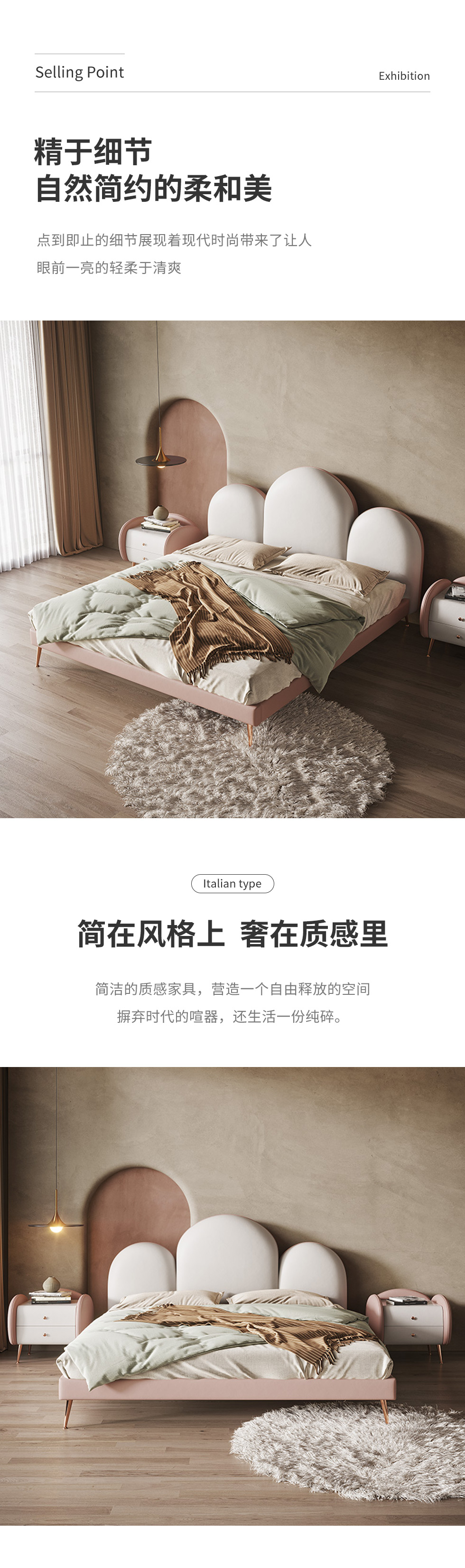 云端 奶油风 超纤皮+钢木排骨架 米白色+粉色 1.5米床