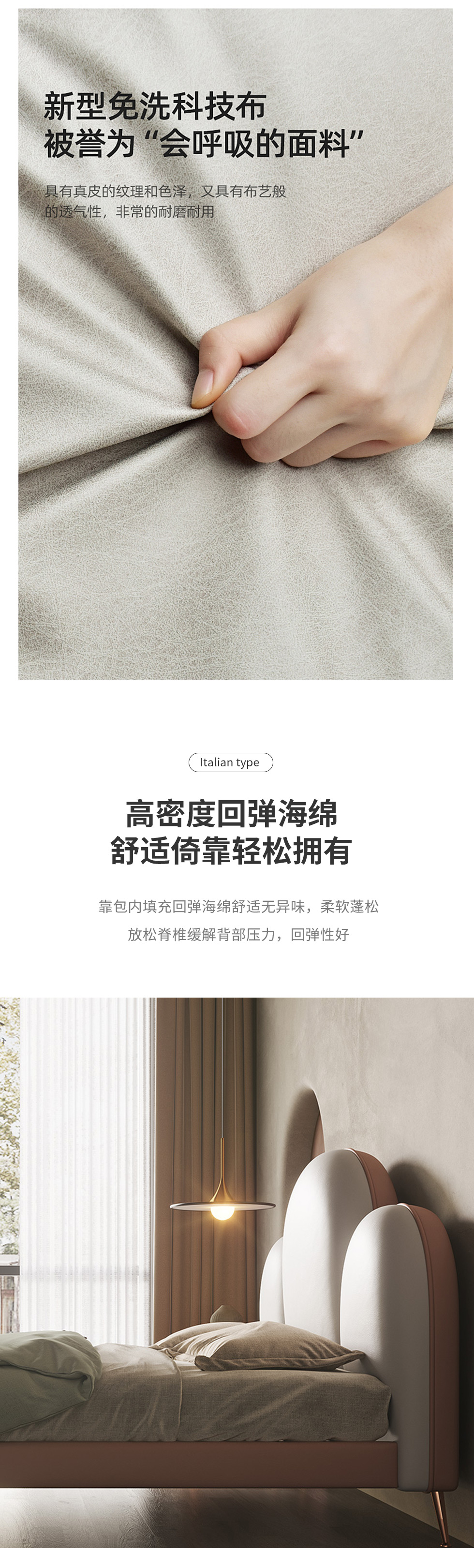 云端 奶油风 超纤皮+蓬松羽绒+镀金实木 米白色 1.8米床¥5233