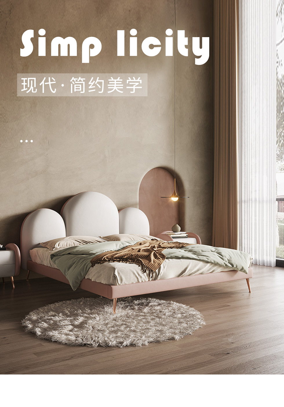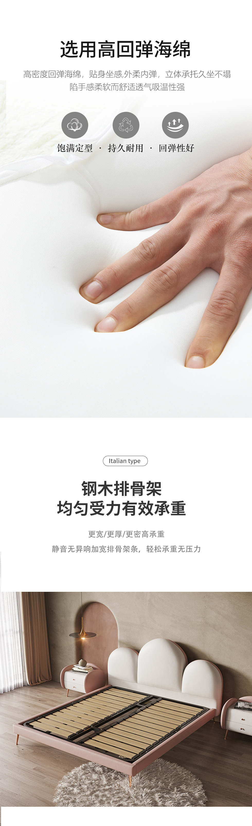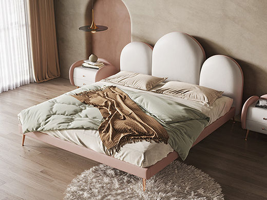 云端 奶油风 科技布+钢木排骨架 米白色+粉色 1.8米床