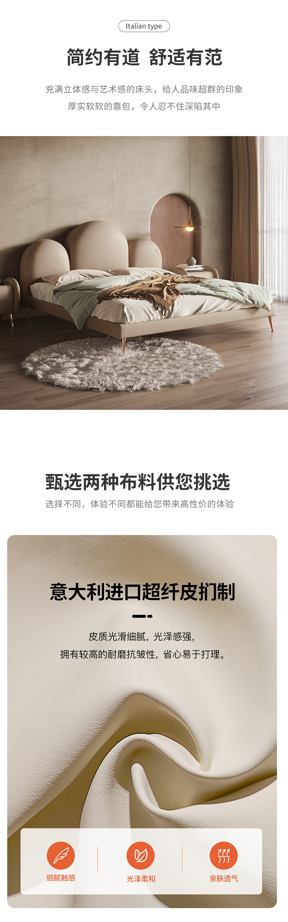 云端 奶油风 超纤皮+高密度海棉 米白色 1.8米床¥6573