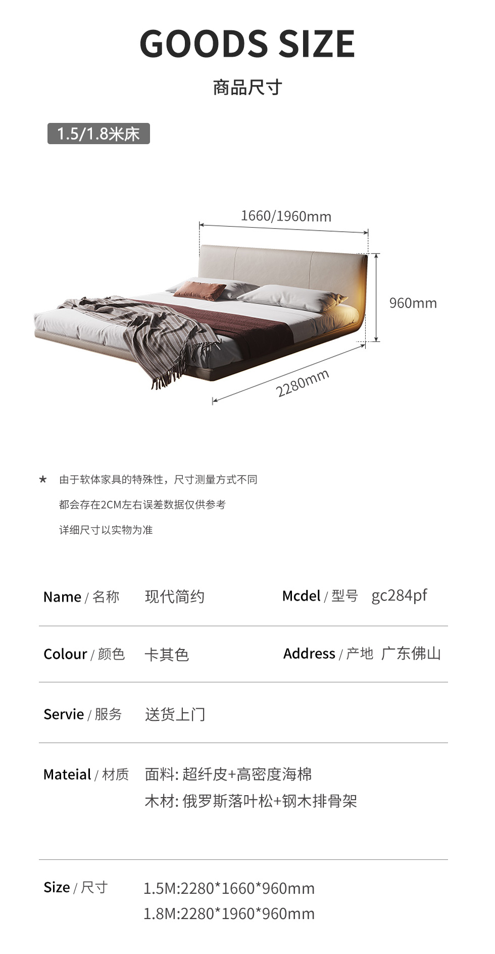 云端 奶油风 超纤皮+钢木排骨架 卡其色 1.8米悬浮床| 商品详情 | 规格参数 | 评价(0) | 购买咨询() | 产品实拍图 | 服务标准 |