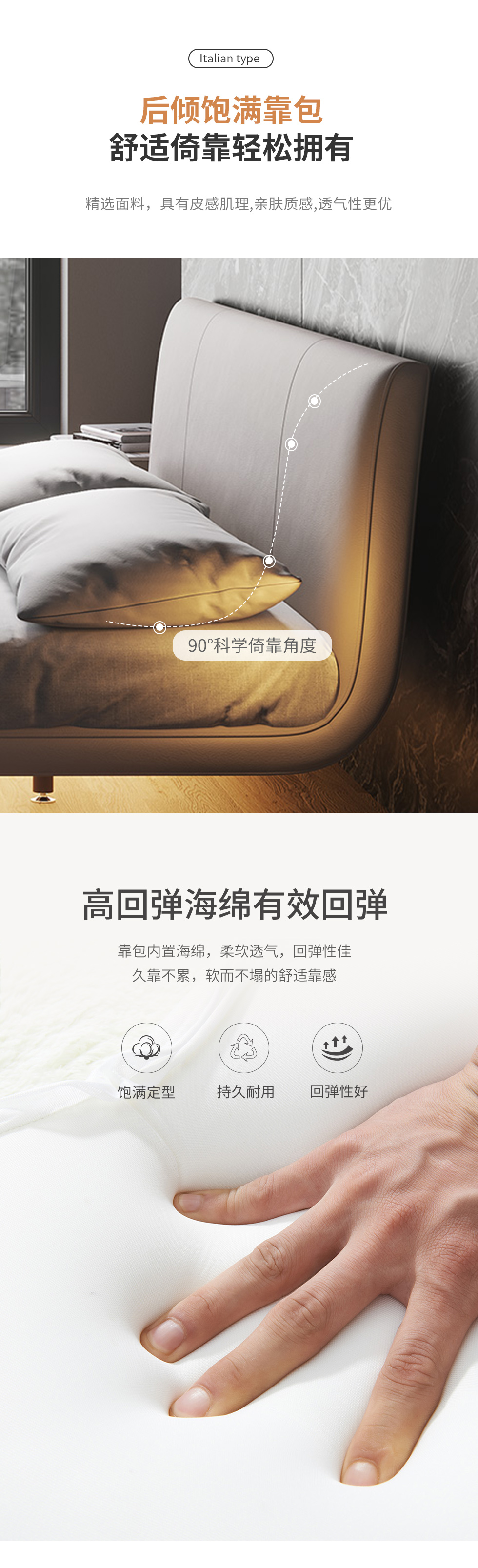 云端 奶油风 超纤皮+蓬松羽绒+镀金实木 米白色 1.8米床¥5233