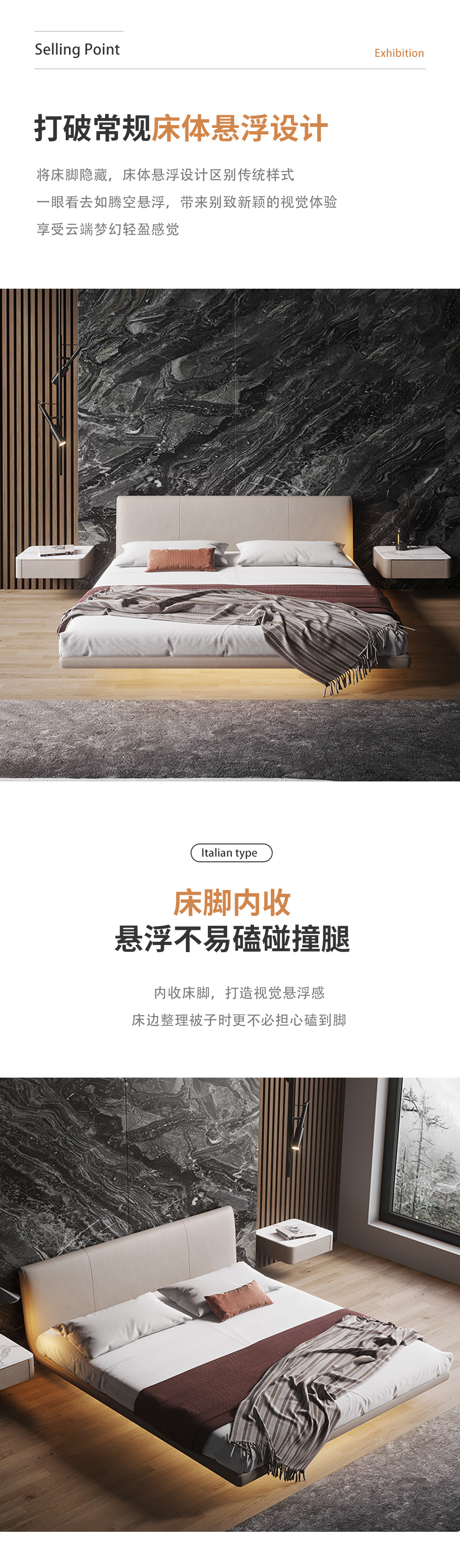 云端 奶油风 超纤皮+高密度海棉 黑白色 1.8米悬浮床¥4963