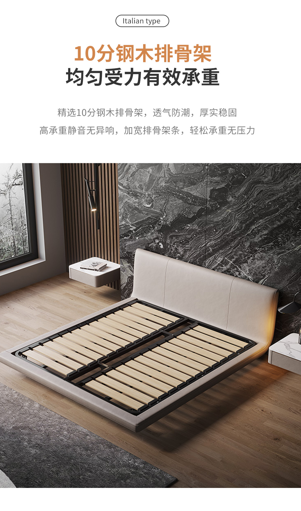 云端 奶油风 超纤皮+钢木排骨架 卡其色 1.8米悬浮床