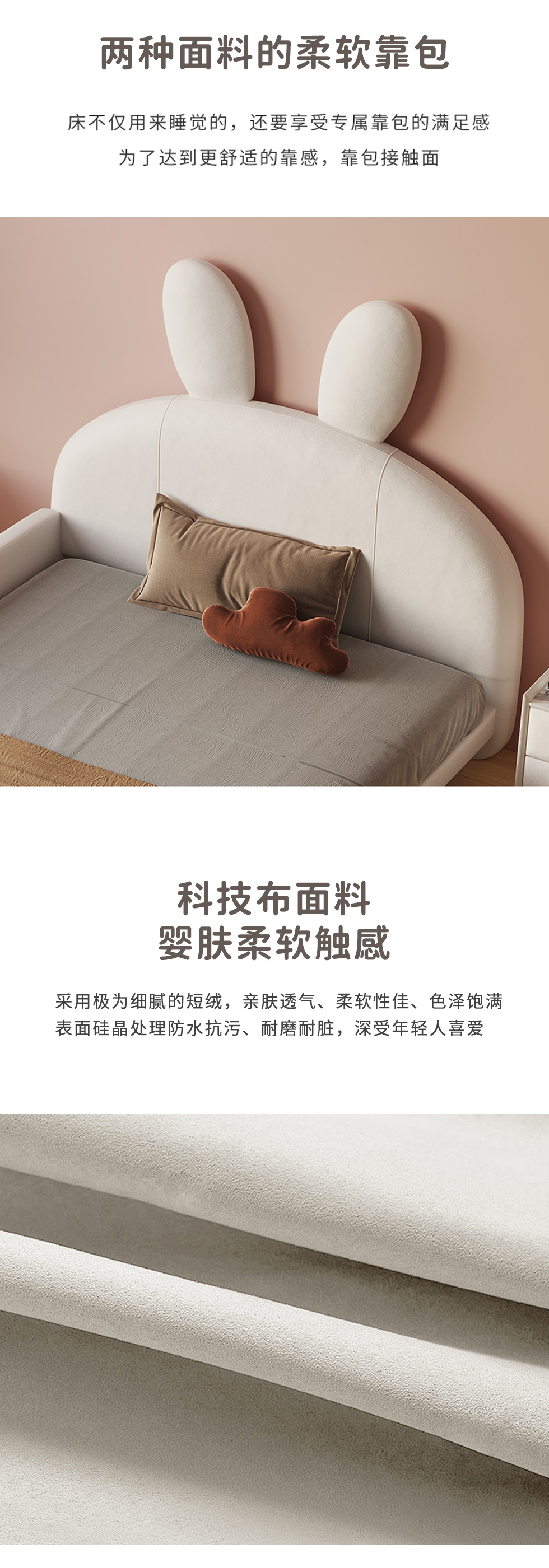 云端 奶油风 超纤皮+高回弹海绵 米白色 1.8米儿童床
