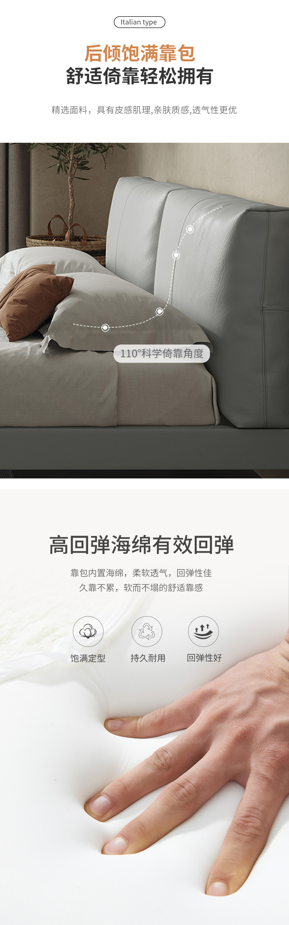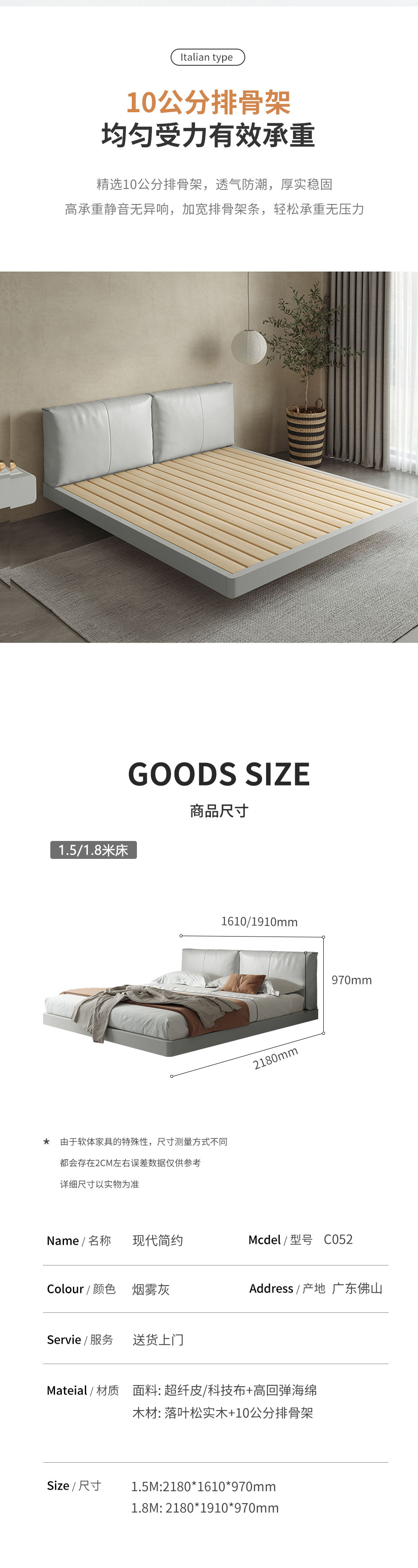 云端 奶油风 超纤皮+高回弹海绵 烟雾灰 1.8米悬浮床