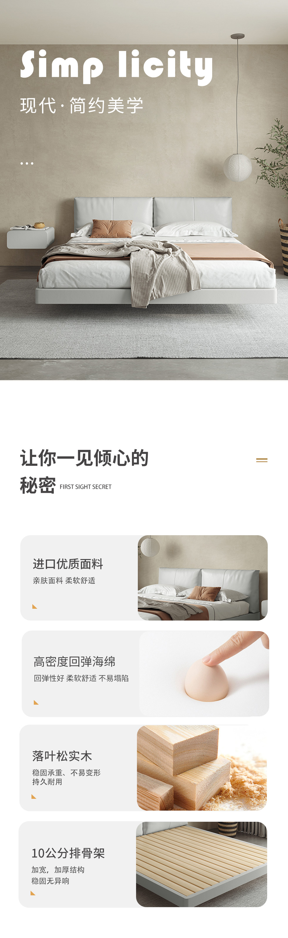 云端 奶油风 超纤皮+高密度海棉 米白色 1.8米悬浮床¥5098