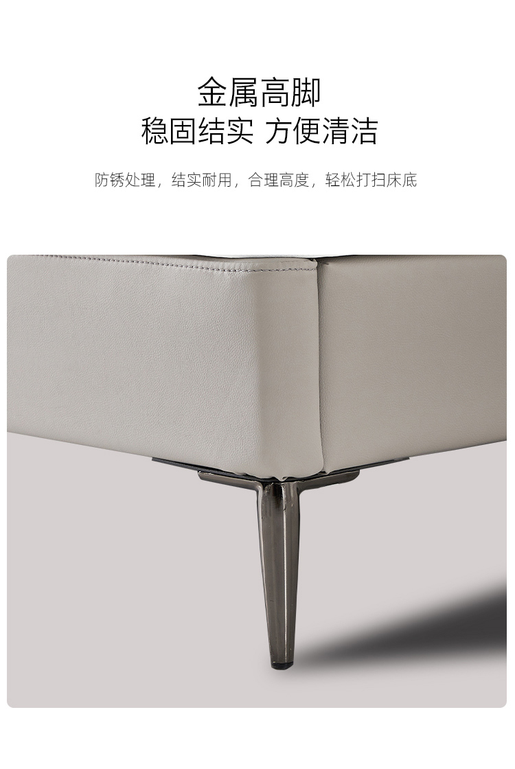 A系优选 现代简约 生态科技皮+实木框架+钢木排骨架+碳素钢金属脚 1.8米软床+2个床头柜(价格不含高箱,如需定制请咨询客服)¥5939