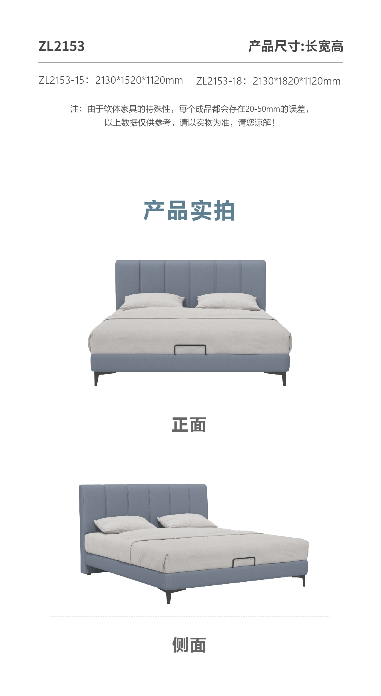 左右家居 现代简约 床头:落叶松木方+E1夹板+无粉海绵+科技布+耐磨科技皮 床侧:E1夹板+海绵+仿皮 五金:排骨架+12cm五金脚+角码 1.5米软床¥6890