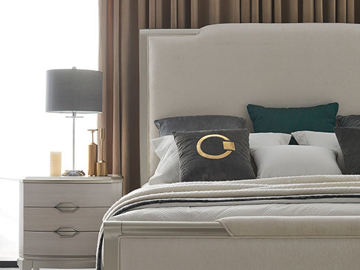 艾美侈 美式 进口榉木木+实木多层板+桦木皮+棉麻布+实木床板 香滨银 1.8米床¥15306