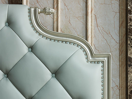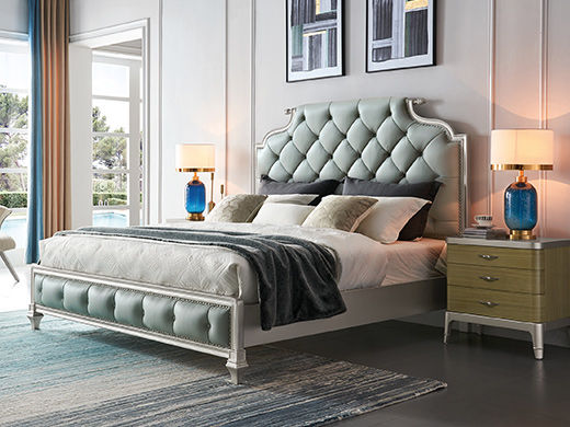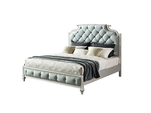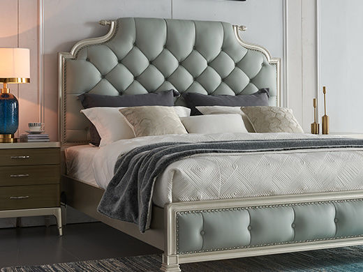 美克金典 美式 欧洲进口榉木+实木多层板+仿真皮+高回弹海绵 香槟银 1.8*2米床