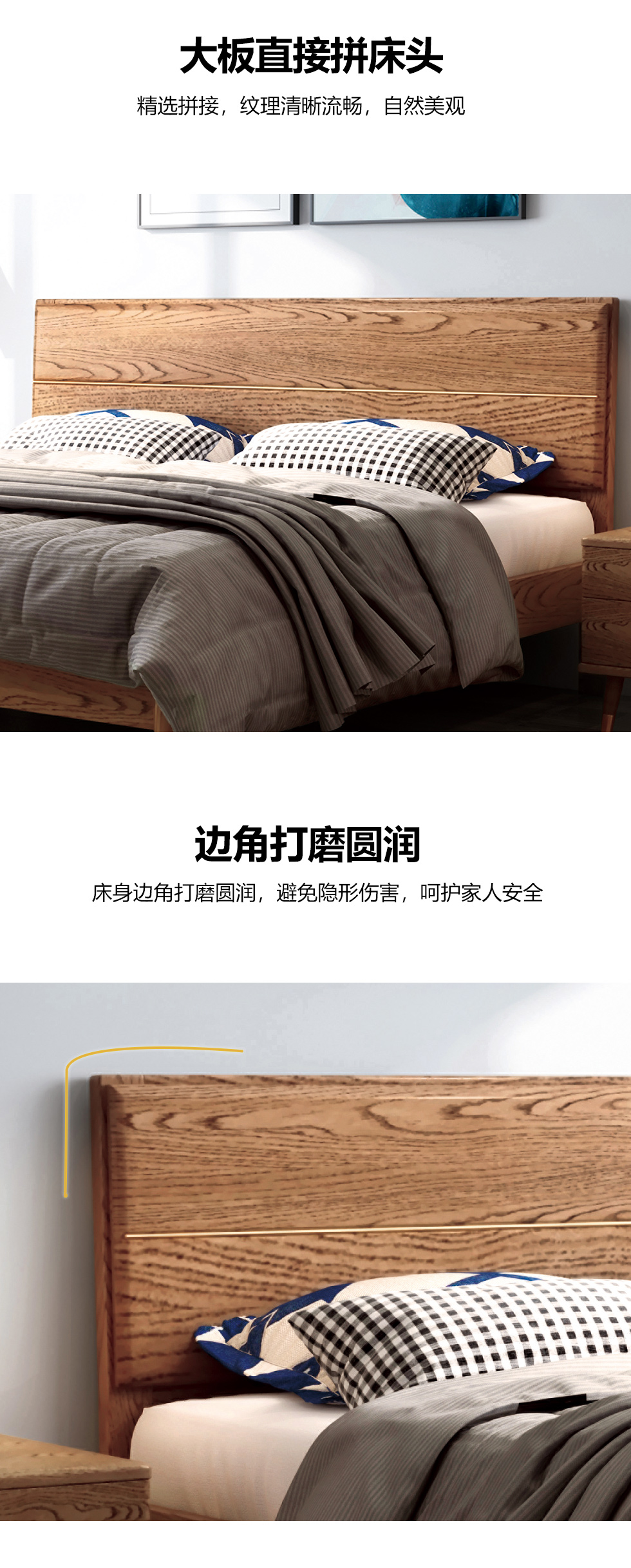简森曼 北欧风 床头床尾脚为橡胶木 原木色 1.8米床 【实木拼接工艺】¥1601