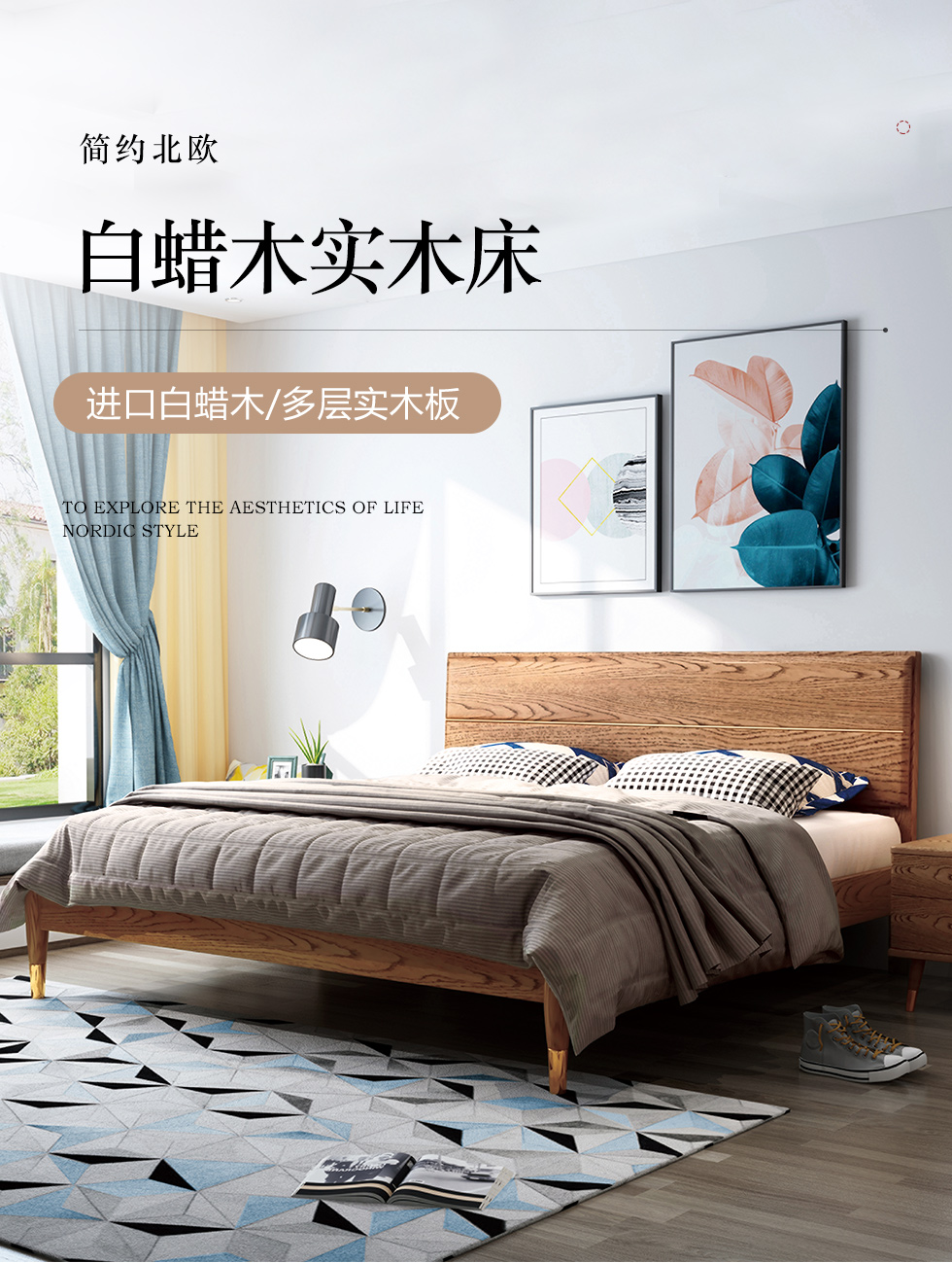 简森曼 北欧风 床头床尾脚为橡胶木 原木色 1.8米床 【实木拼接工艺】¥1601