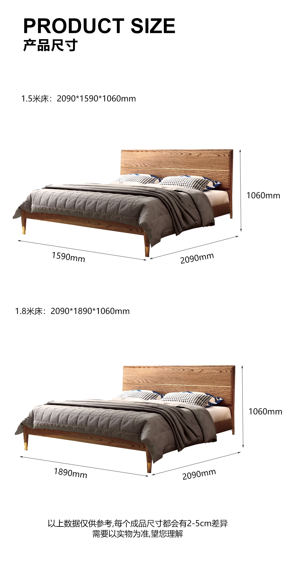 简森曼 北欧风 床头床尾脚为橡胶木 原木色 1.8米床 【实木拼接工艺】¥2190