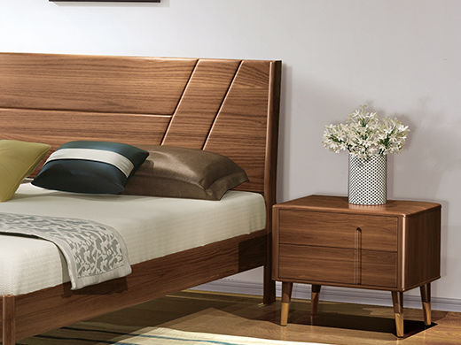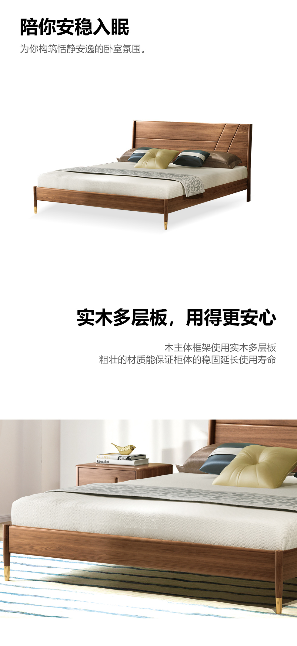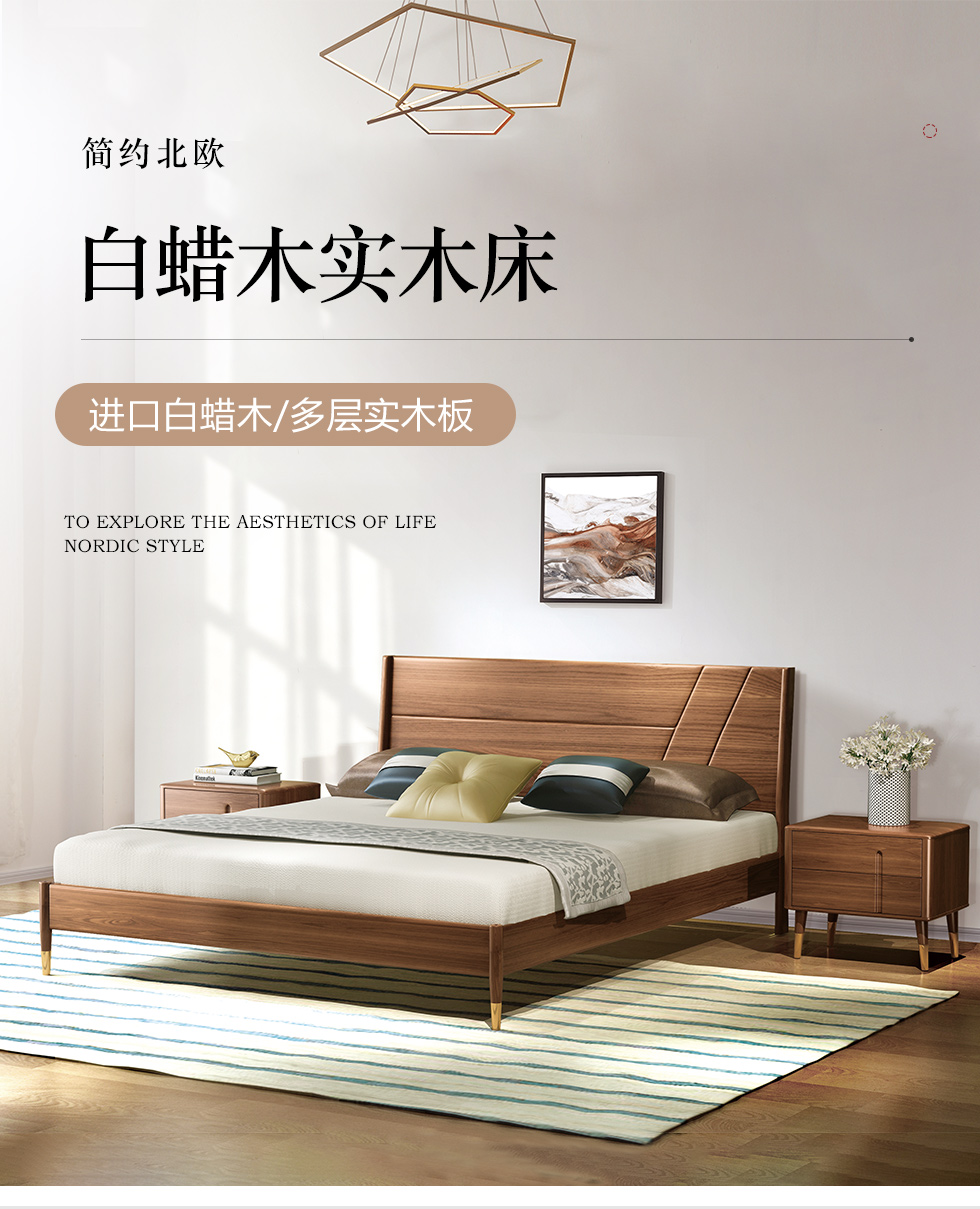 乐芙兰 北欧 进口白蜡木+多层实木板+松木床板 胡桃色 1.8米床
