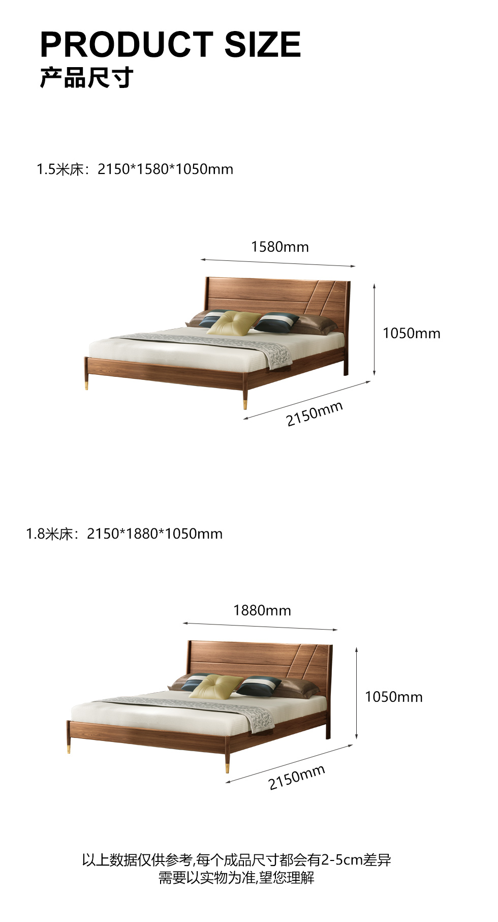 乐芙兰 北欧 进口白蜡木+多层实木板+超纤皮+高回弹海绵+松木床板 胡桃色 1.8米床¥2414