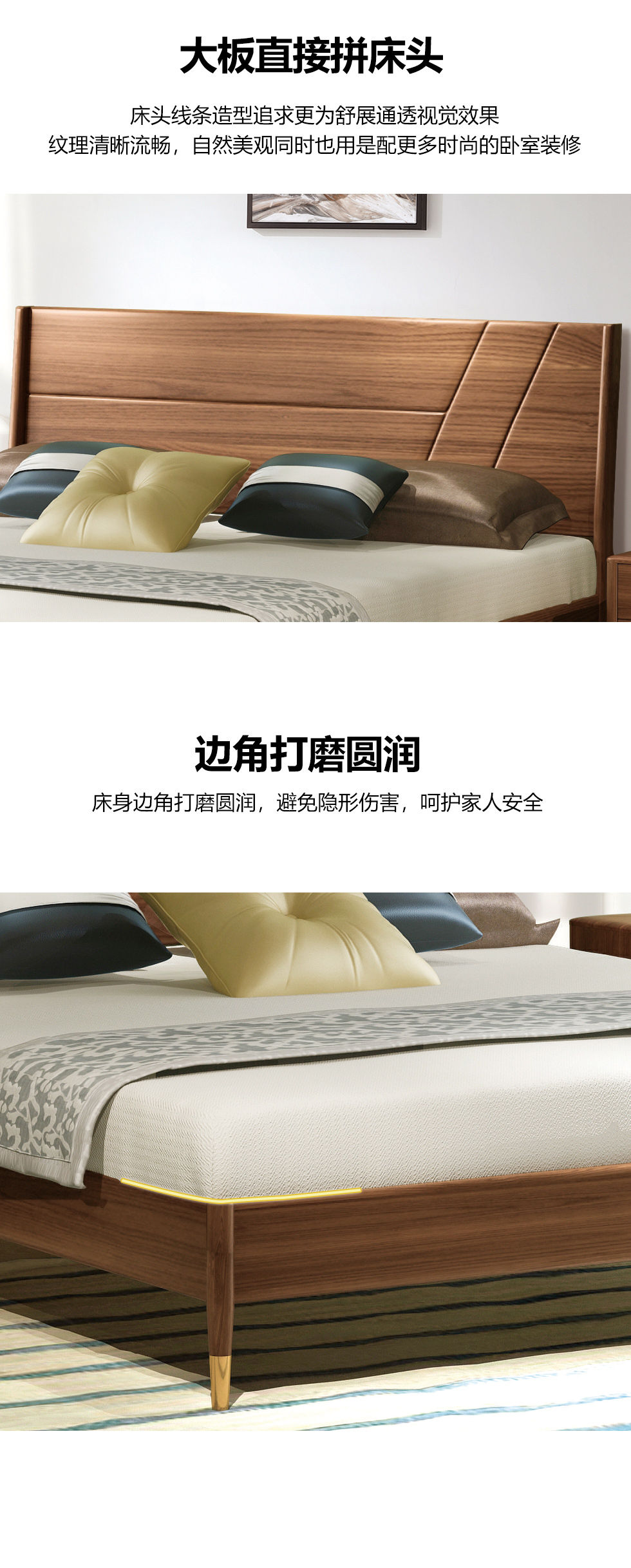 简森曼 北欧风 床头床尾脚为橡胶木 原木色 1.8米床 【实木拼接工艺】¥1601