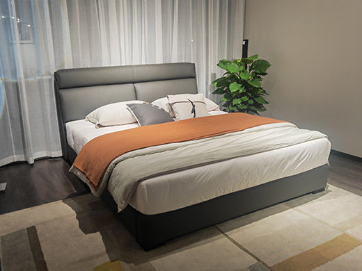 A系优选 极简 接触面头层真皮+进口落叶松+多层实木板+高回弹海绵+碳素钢五金+10分钢木排骨架 水泥灰 1.8米床(价格不含高箱,如需定制请咨询客服)