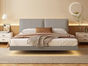 B系优选 现代简约 生态真皮+进口落叶松+多层实木板+高回弹海绵+碳素钢五金+10分钢木排骨架 浅灰 1.5米悬浮床带灯(价格不含高箱,如需定制请咨询客服)
