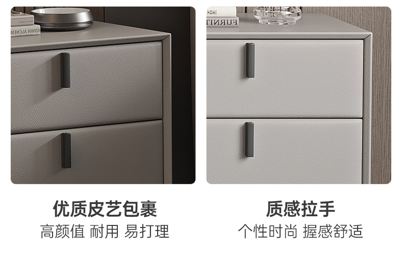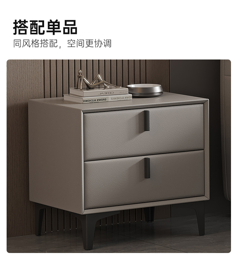 非凡工艺 现代简约简约 接触面真皮+仿皮+木框架高密 度回弹海绵+静音防滑实木十分排骨条+五金脚+静音条 1.8米 真皮软床