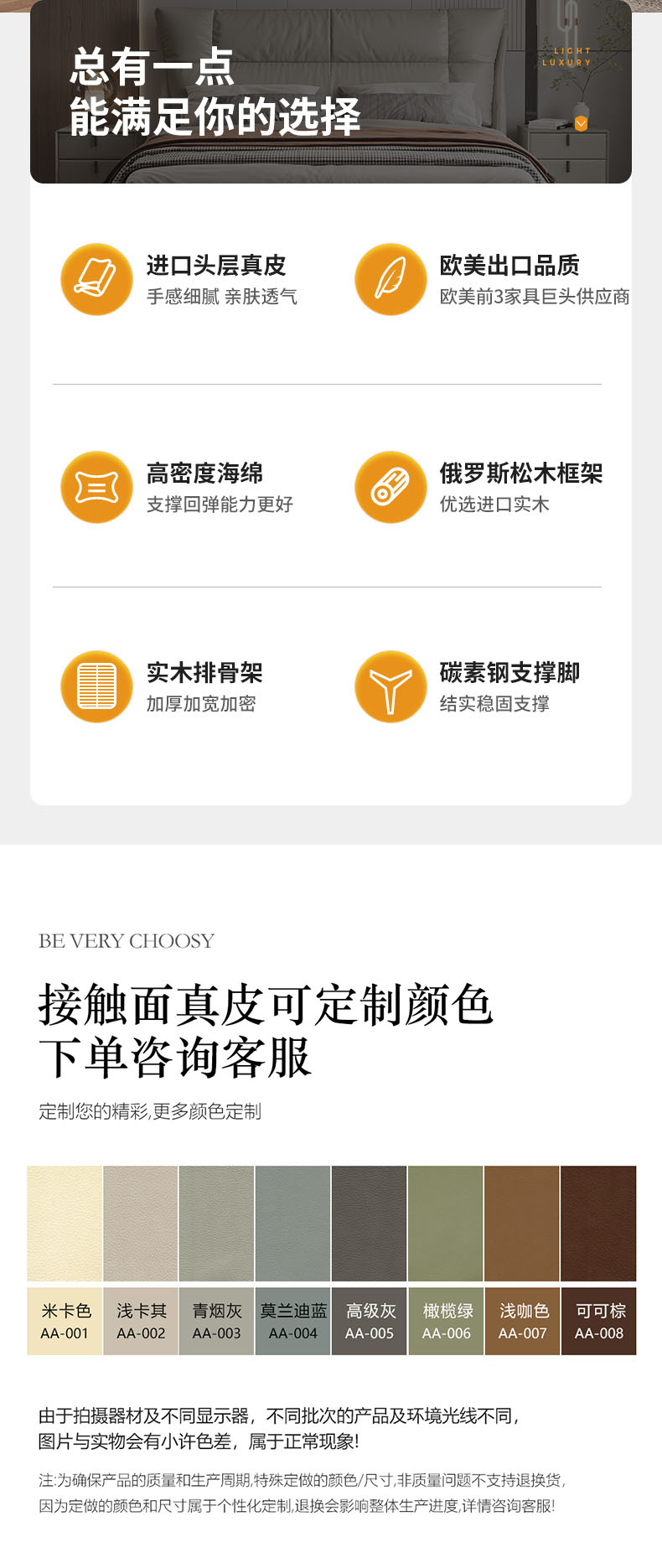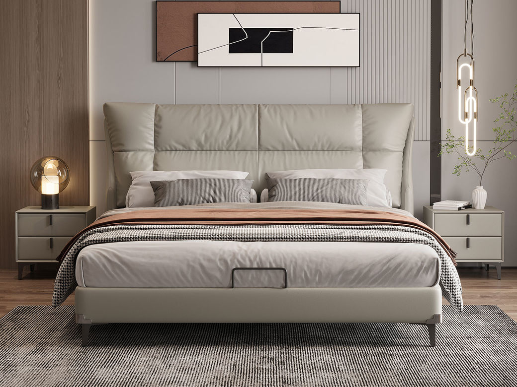 A系优选 现代简约 全实木框架 接触面头层牛皮 高密度海绵 1.8米床(价格不含高箱,如需定制请咨询客服)