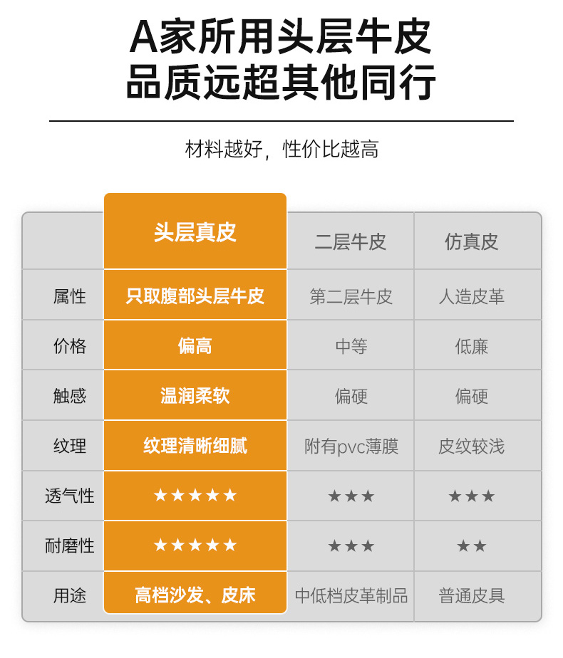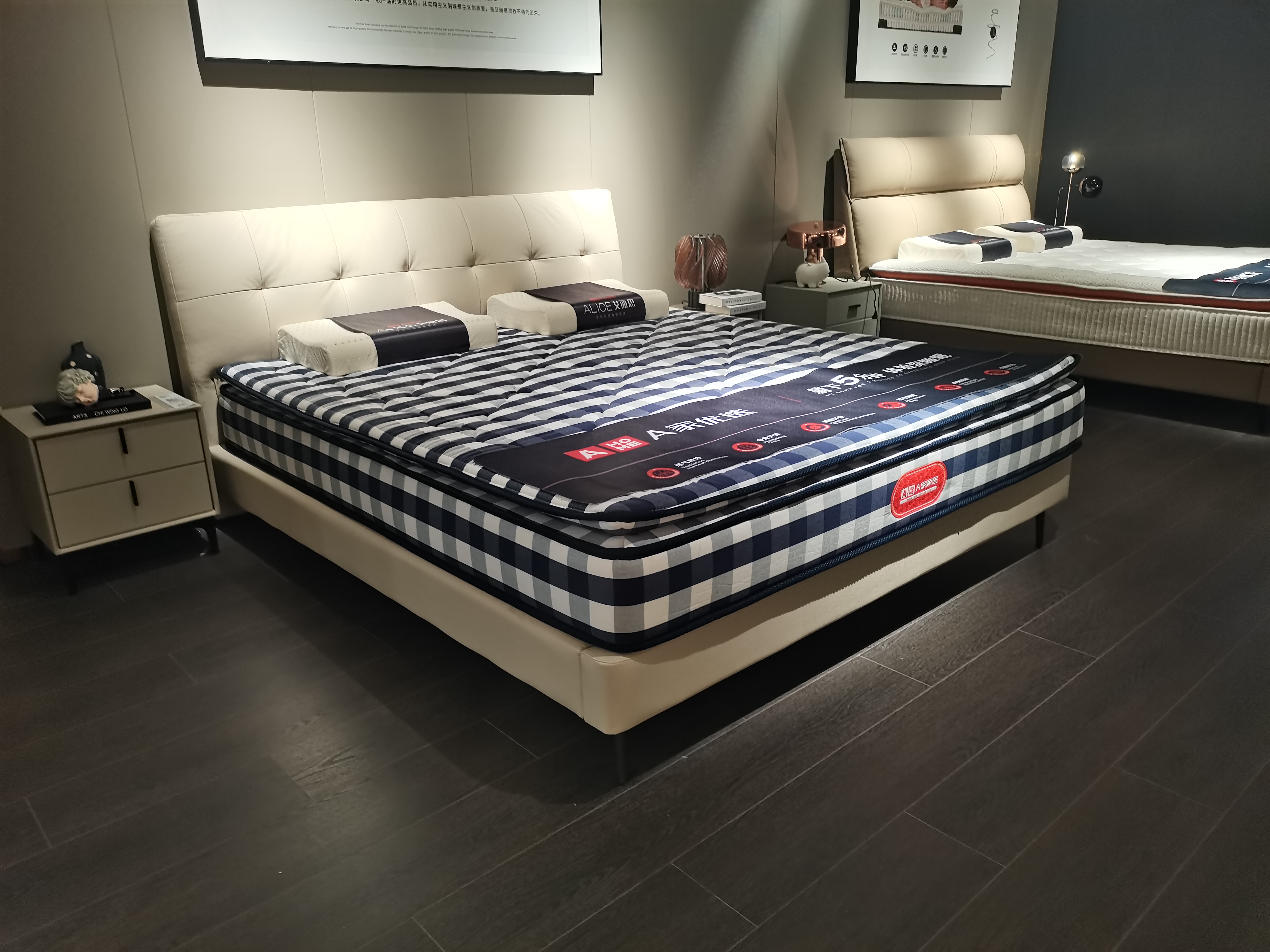 A家家居 现代简约 接触面进口头层黄牛皮+海绵填充全实木框架10cm钢木排骨架15cm碳素钢五金脚 1.8床¥4332