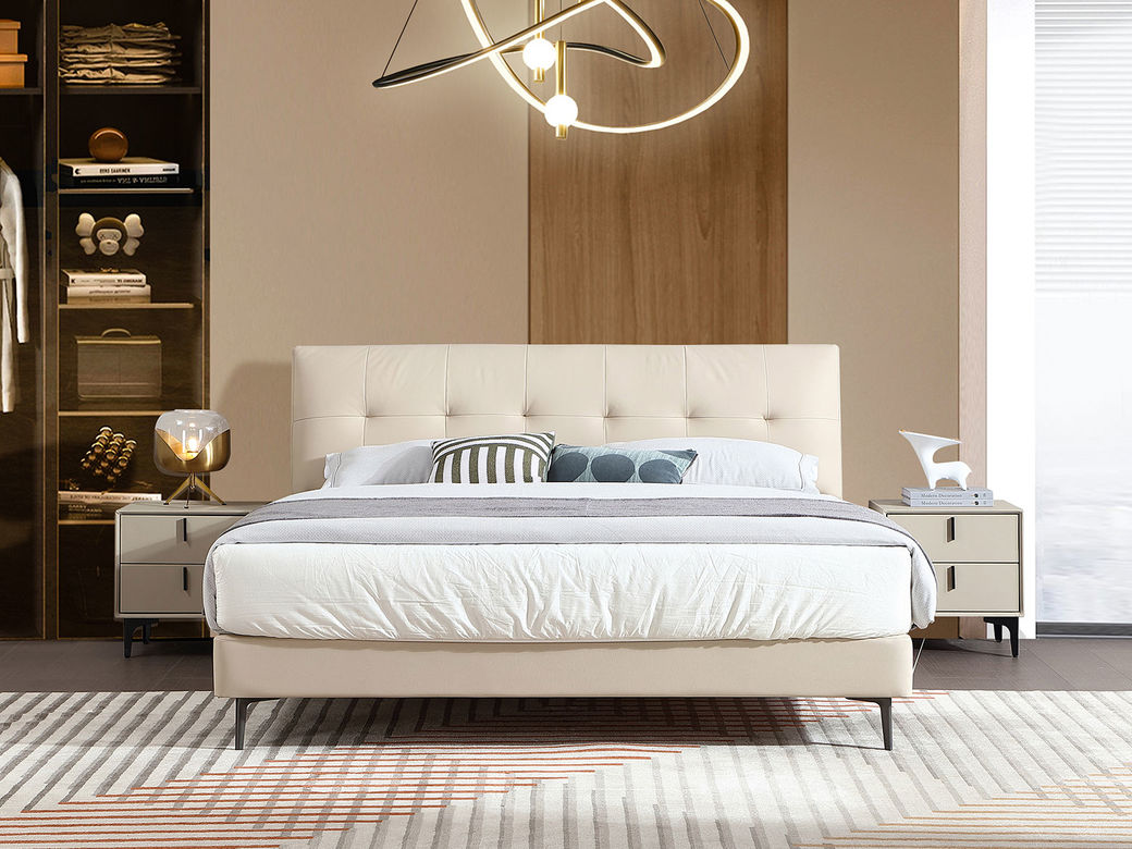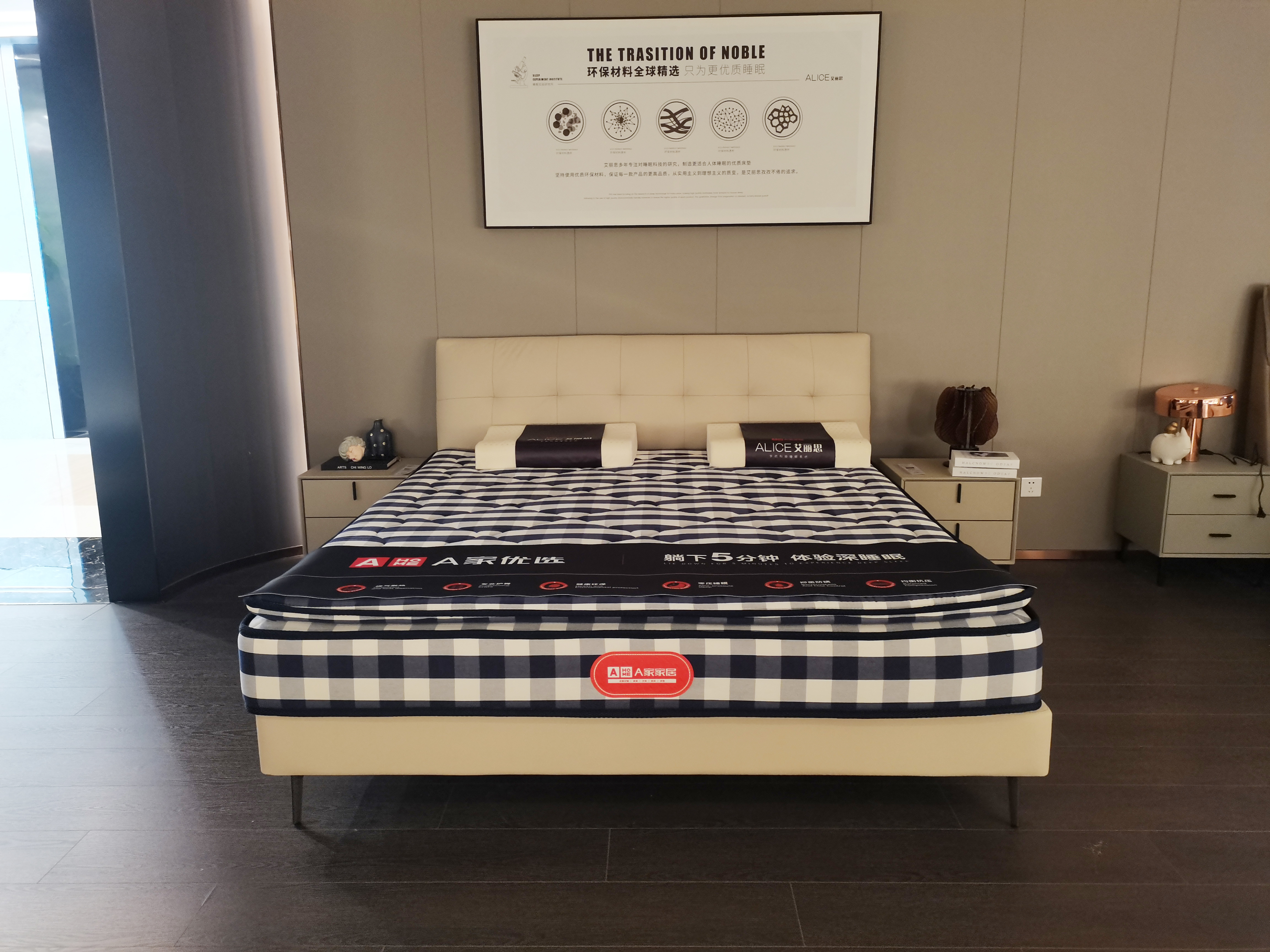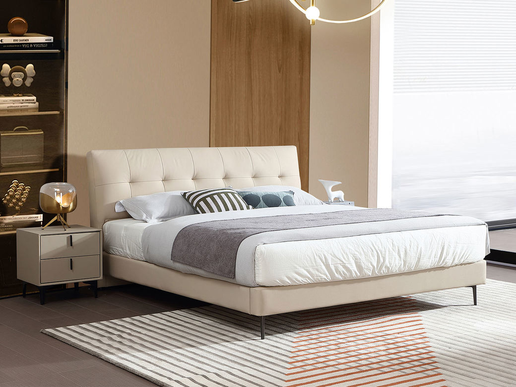 A家家居 现代简约 接触面头层真皮+海绵填充实木+实木多层板框架 1.8床 |