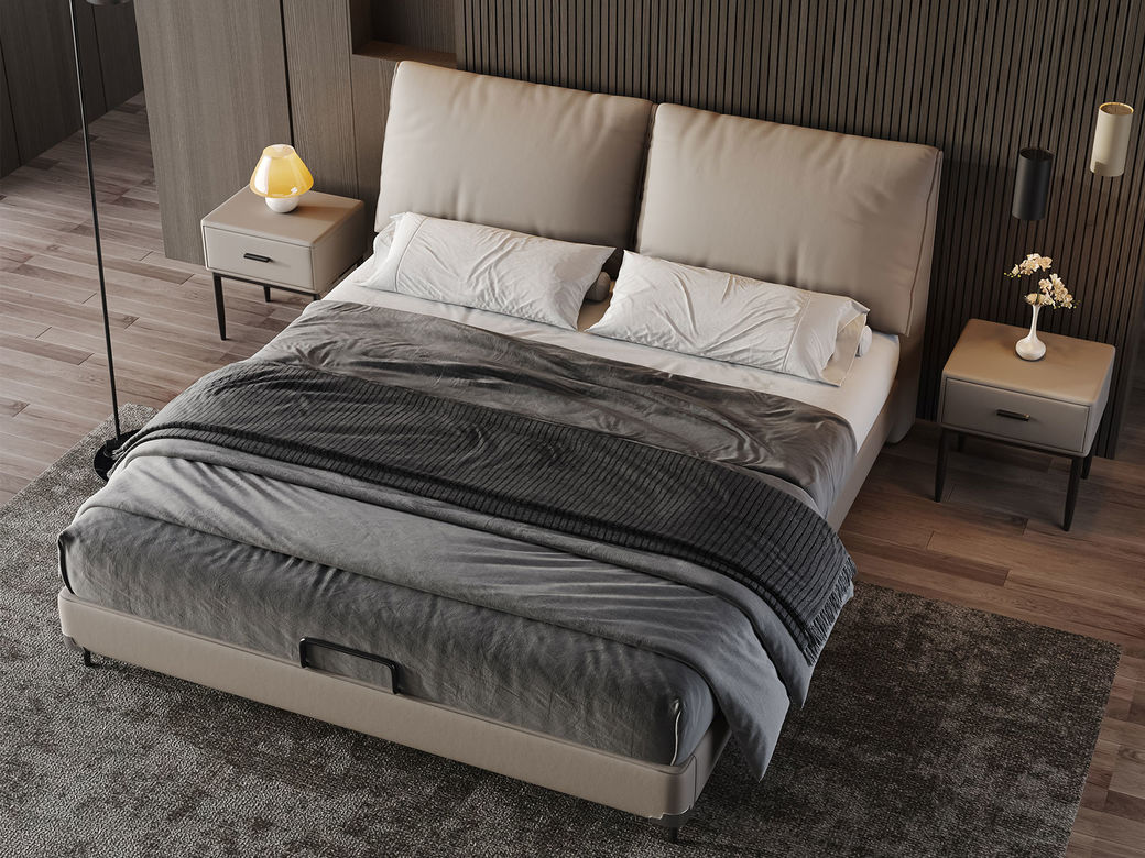 A系优选 现代简约 全实木框架 接触面头层牛皮 高密度海绵 1.8米床(价格不含高箱,如需定制请咨询客服)¥2819