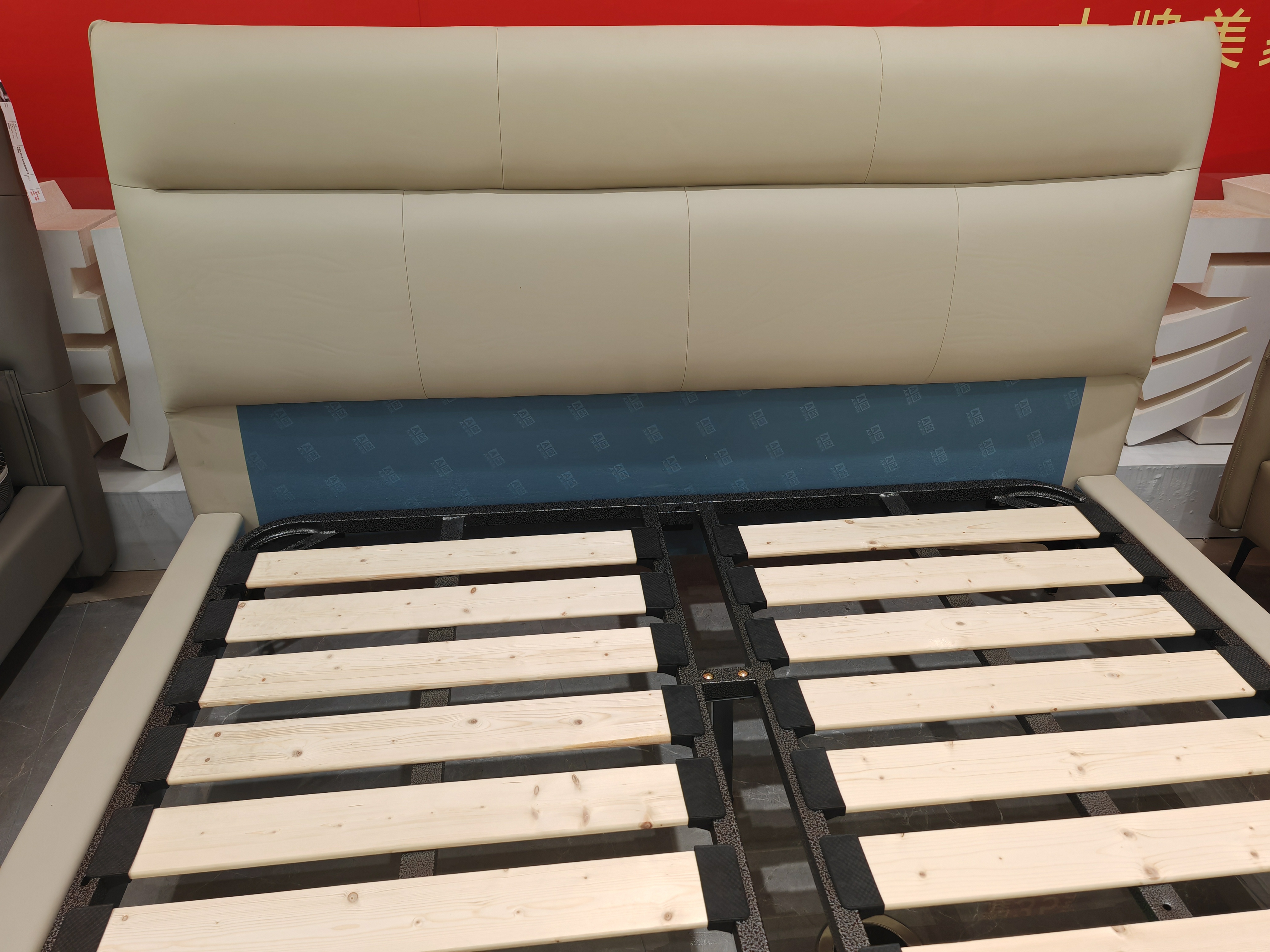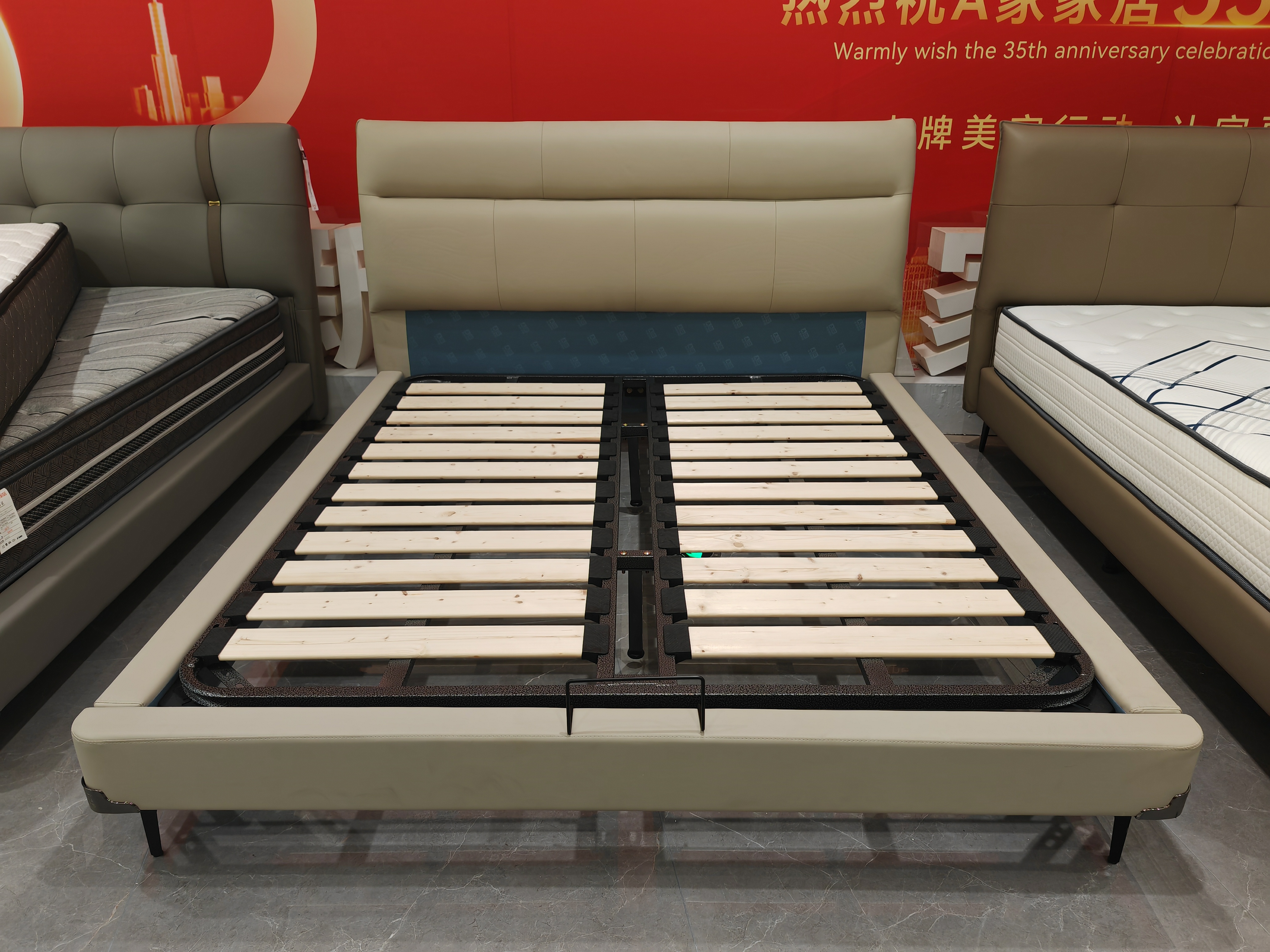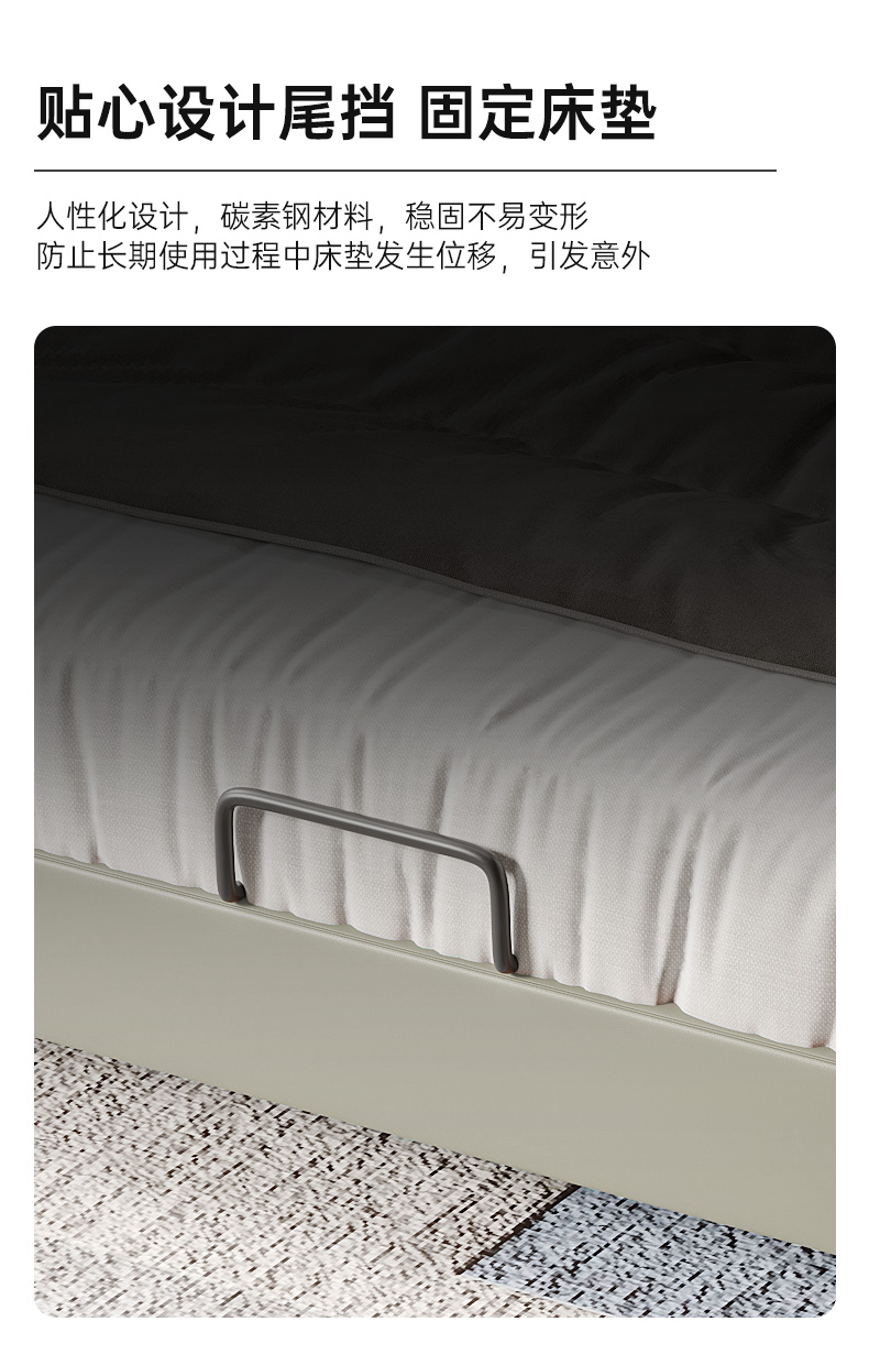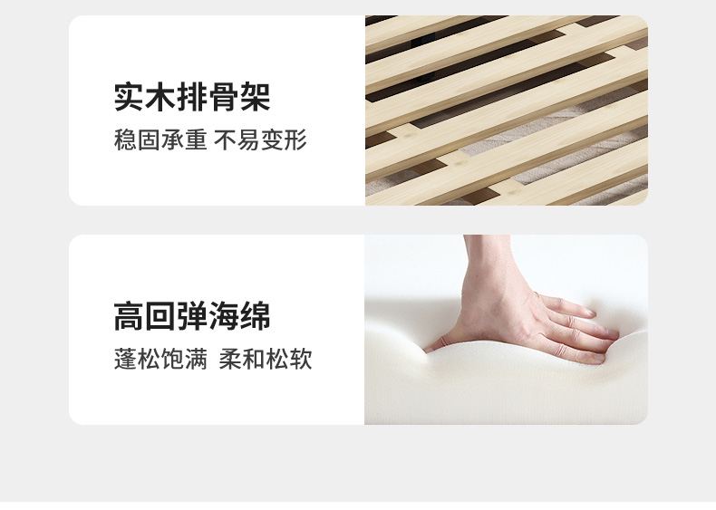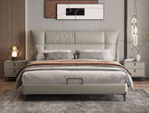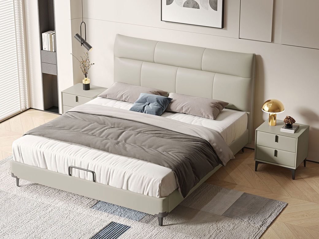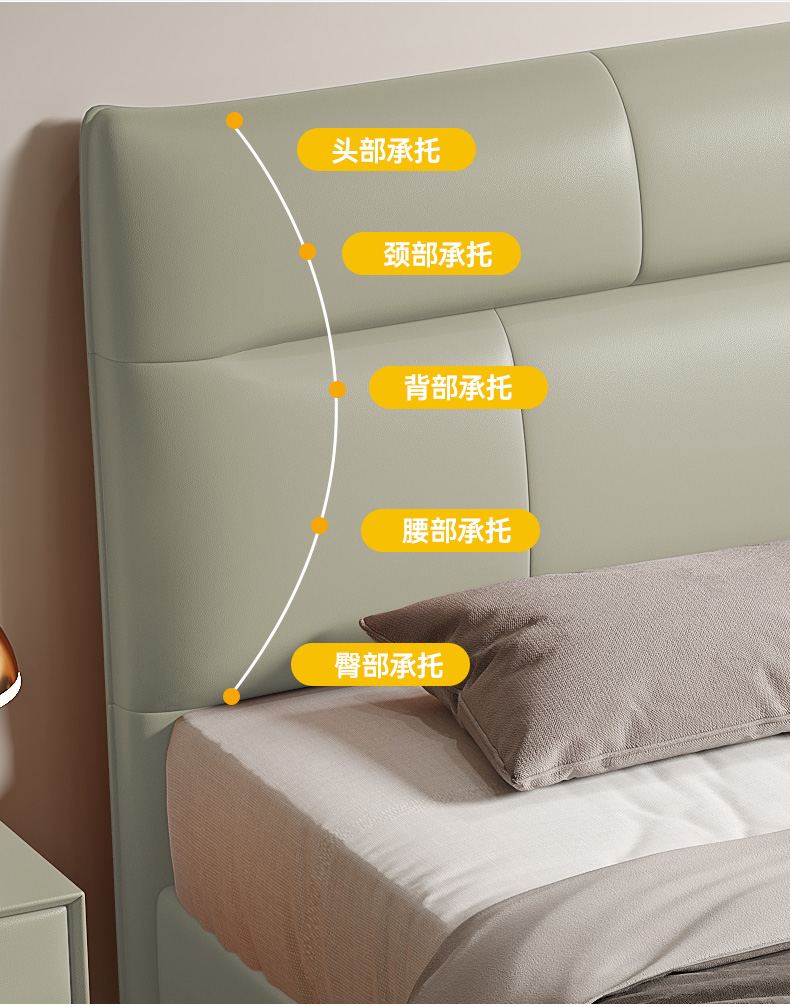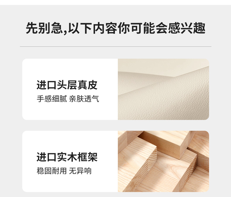 B系优选 现代简约 接触面真皮+仿皮+木框架高密 度回弹海绵+静音防滑实木十分排骨条+静音条 1.5米 真皮软床(价格不含高箱,如需定制请咨询客服)¥2819