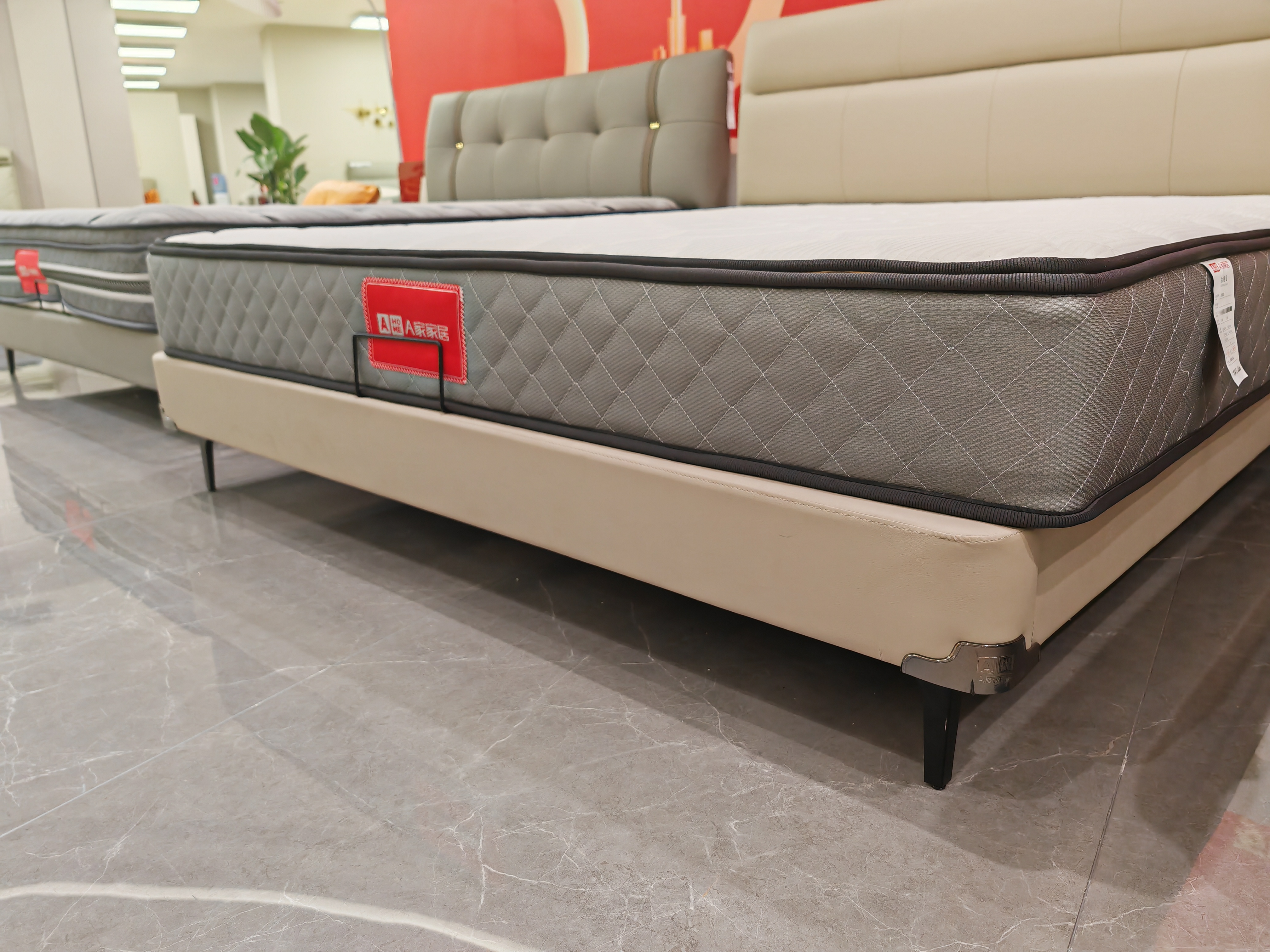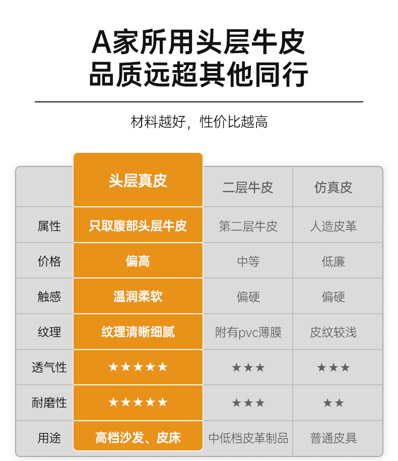 A家家居 现代简约 接触面进口头层黄牛皮+海绵填充全实木框架10cm钢木排骨架15cm碳素钢五金脚 1.8床 |