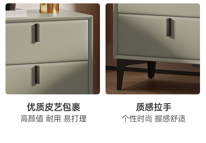 非凡工艺 现代简约简约 接触面真皮+仿皮+木框架高密 度回弹海绵+静音防滑实木十分排骨条+五金脚+静音条 1.8米 真皮软床
