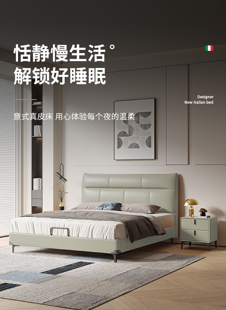 A系优选 现代简约 全实木框架 接触面头层牛皮 高密度海绵 1.8米床(价格不含高箱,如需定制请咨询客服)¥3728