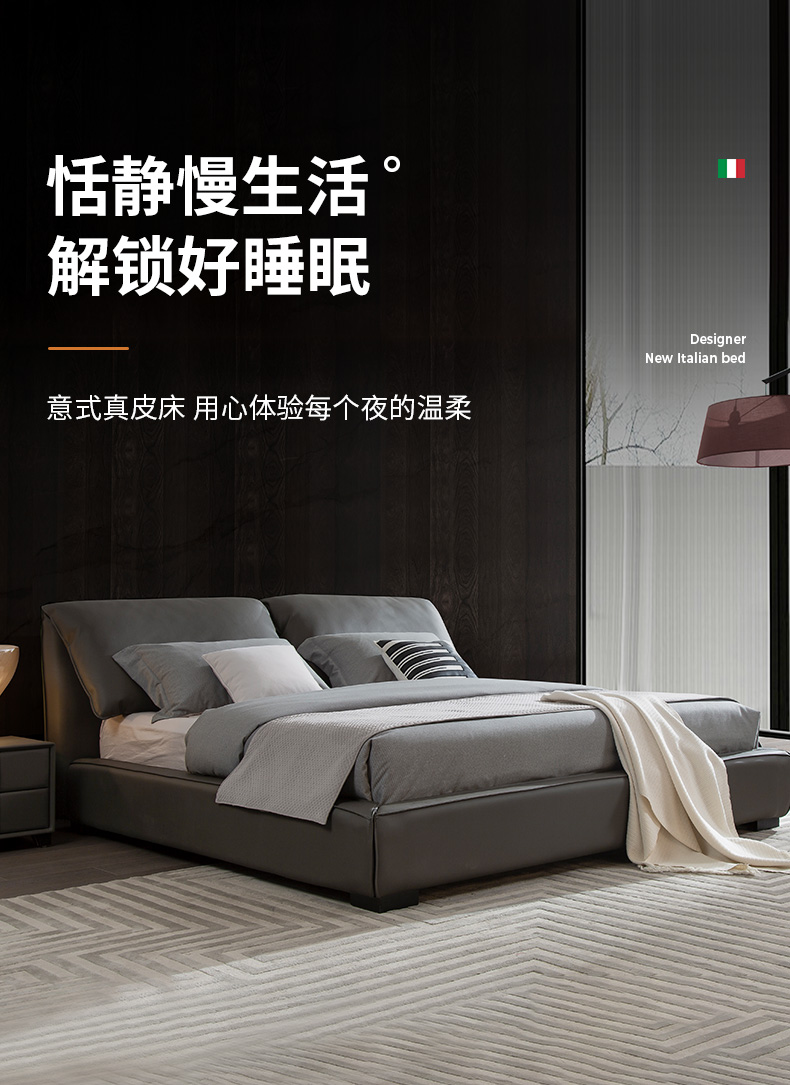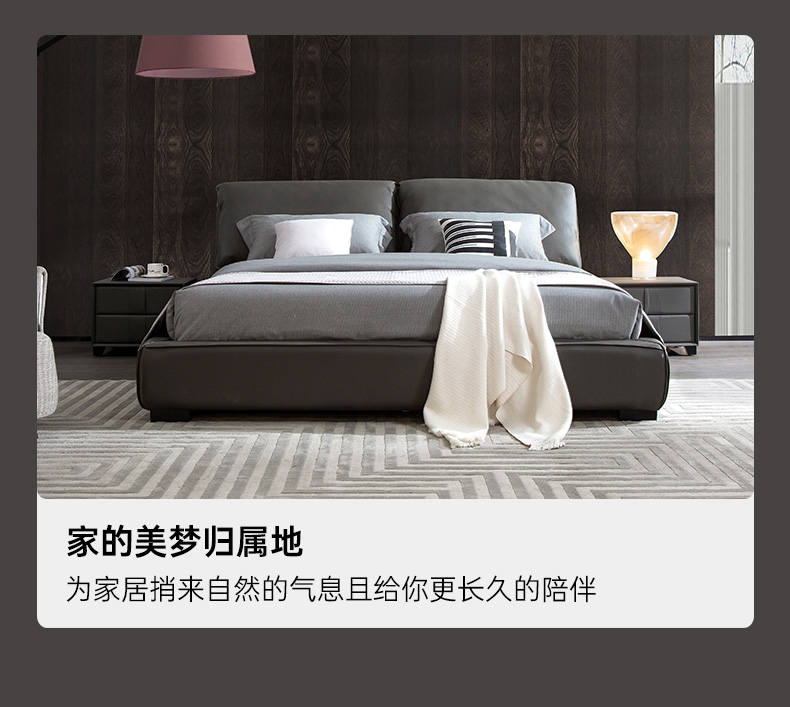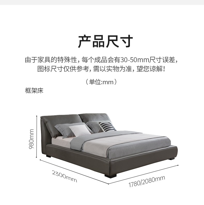 A家家居 现代简约 接触面进口头层黄牛皮+海绵填充+实木+实木多层板框架 1.8床¥2819
