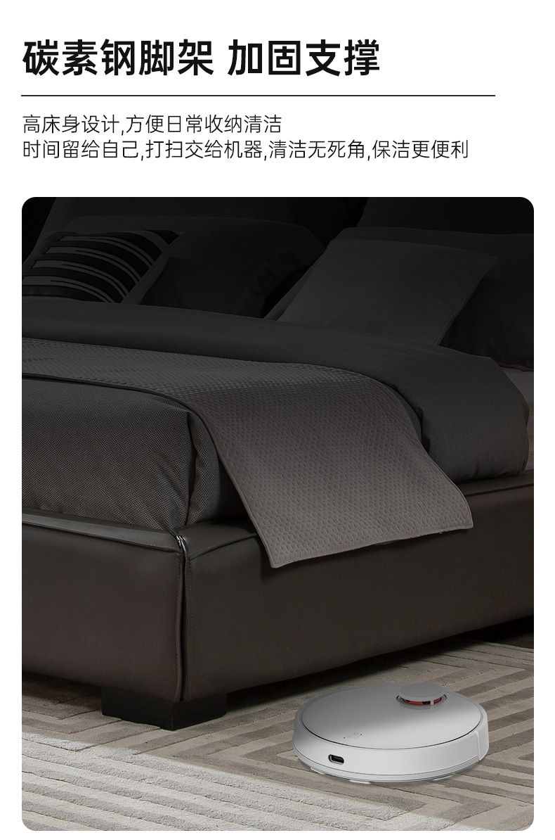 A系优选 现代简约 全实木框架 接触面头层牛皮 高密度海绵 1.8米床(价格不含高箱,如需定制请咨询客服)¥2819