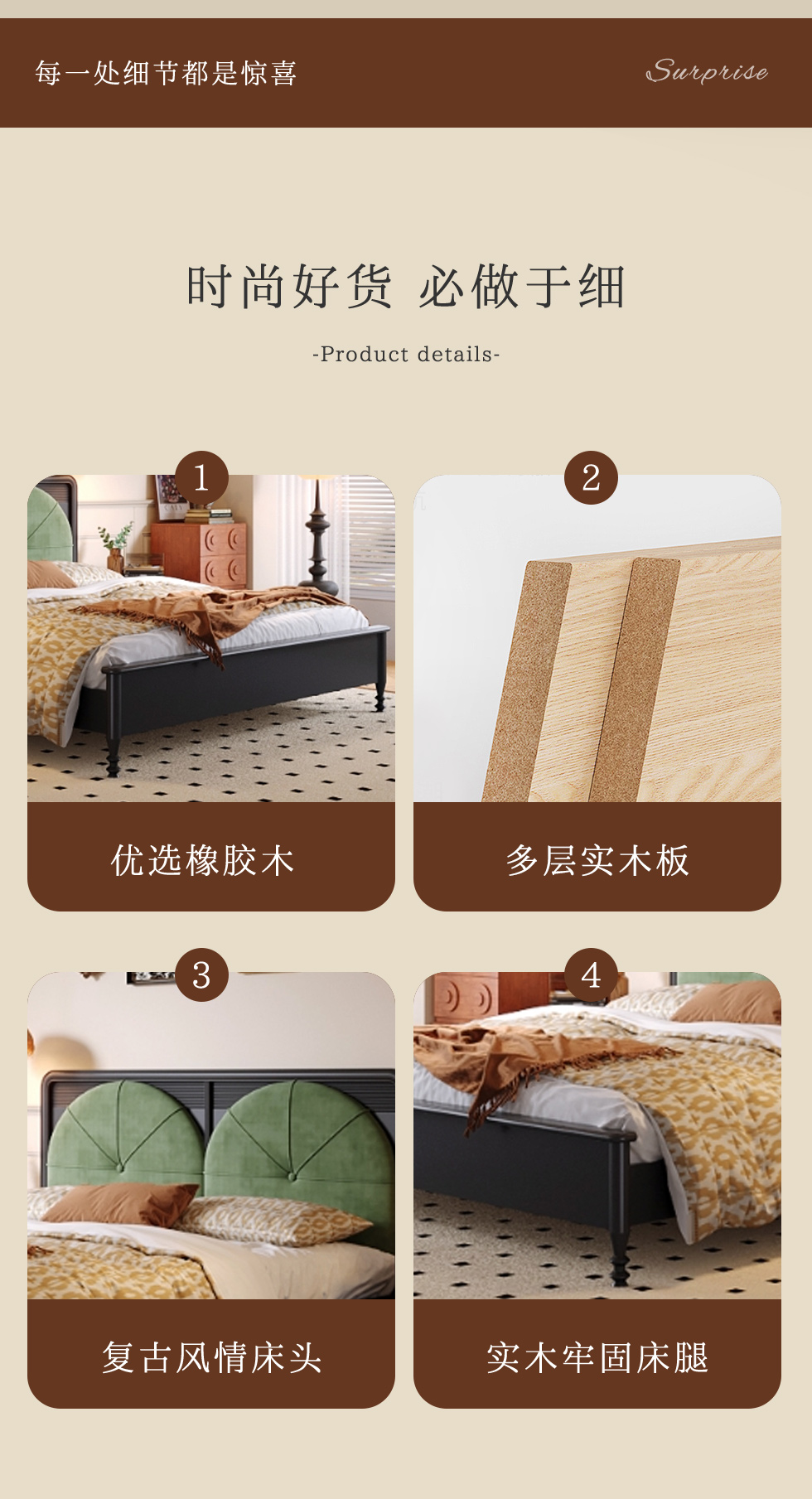 中古·森 网红 中古风 进口樱桃木+多层实木板+实木床板 1.8米床¥1653