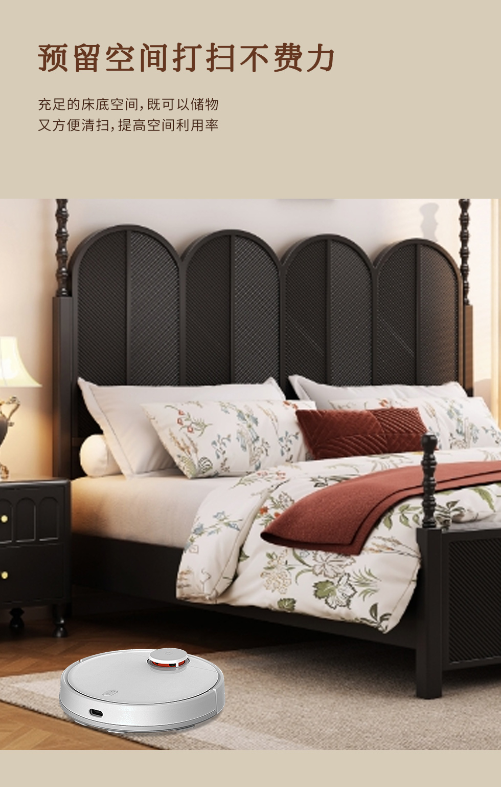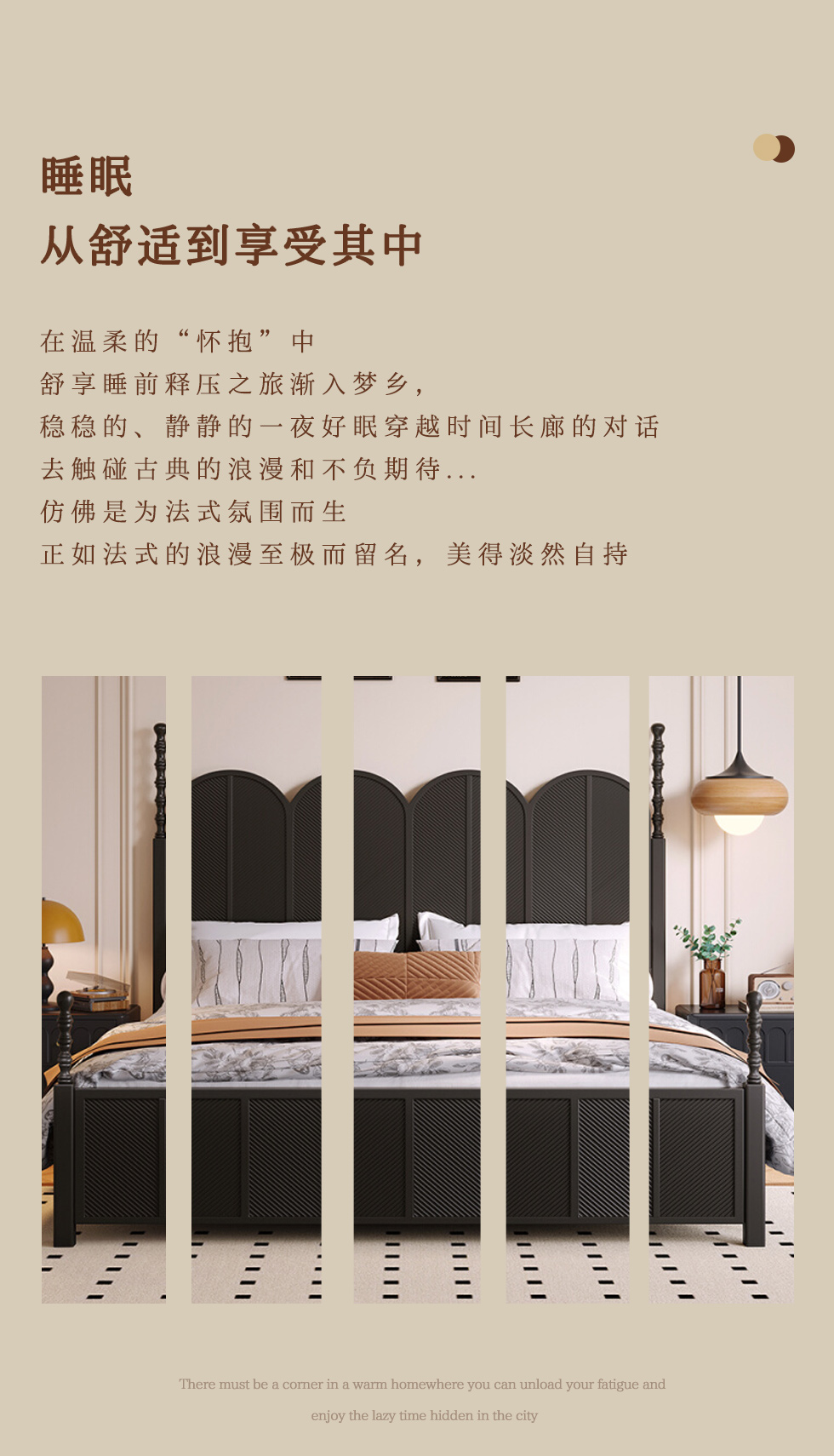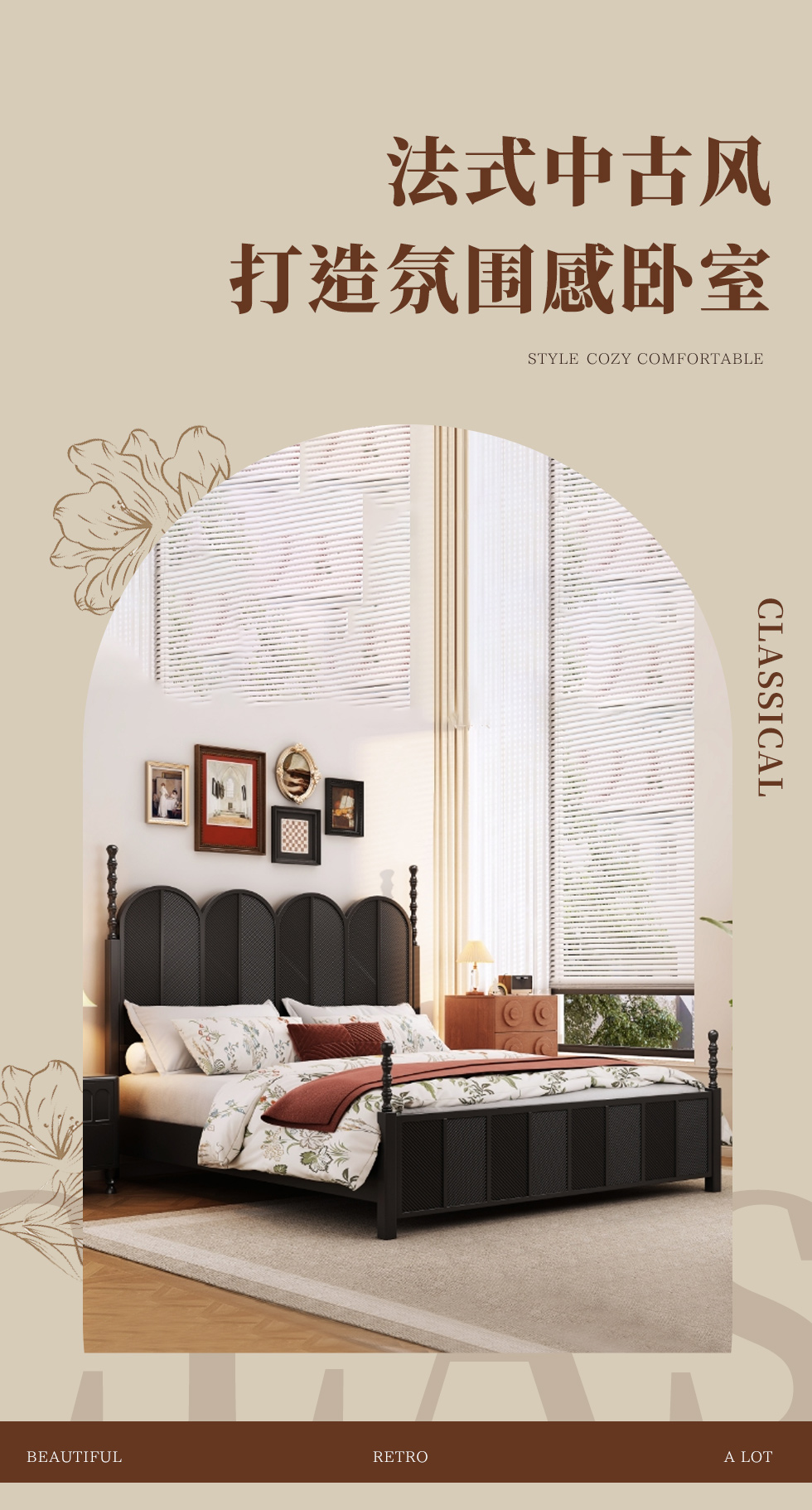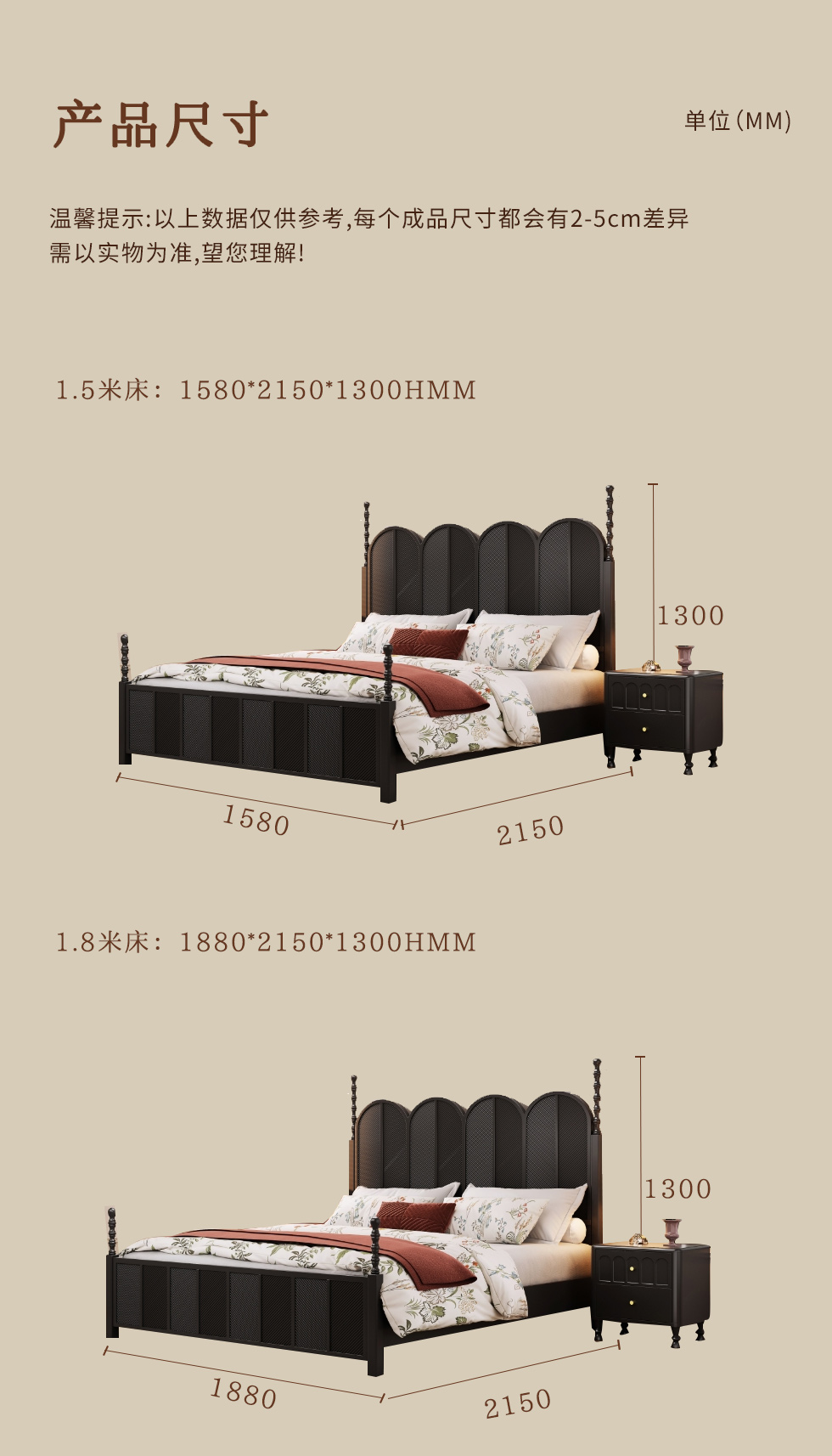 中古·尚 网红 中古风 进口像胶木+多层实木板+全实木床板+碳素钢五金配件 黑色 1.8米床