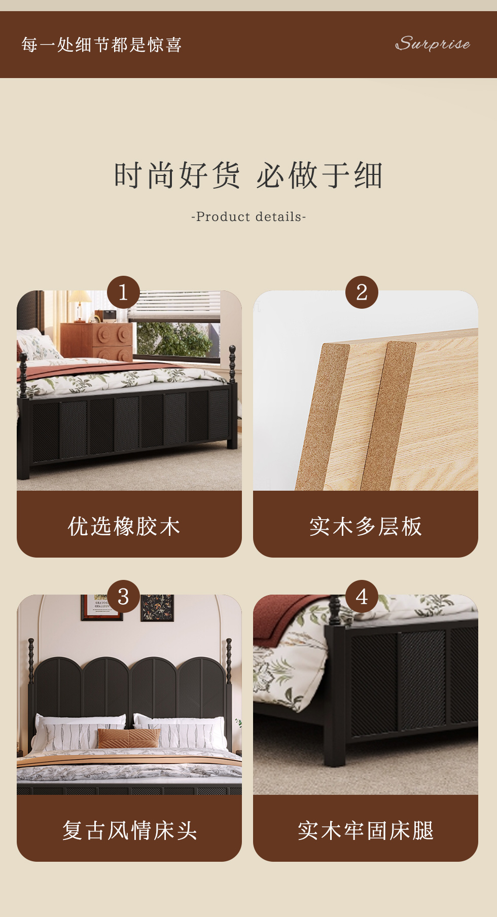 木作中古 中古风 橡胶木 胡桃色 1.8米床| 商品详情 | 规格参数 | 评价(0) | 购买咨询() | 产品实拍图 | 服务标准 |