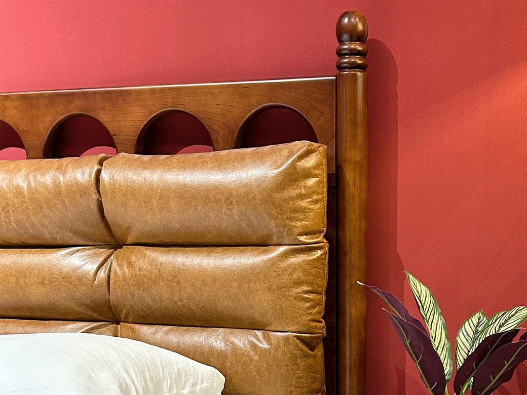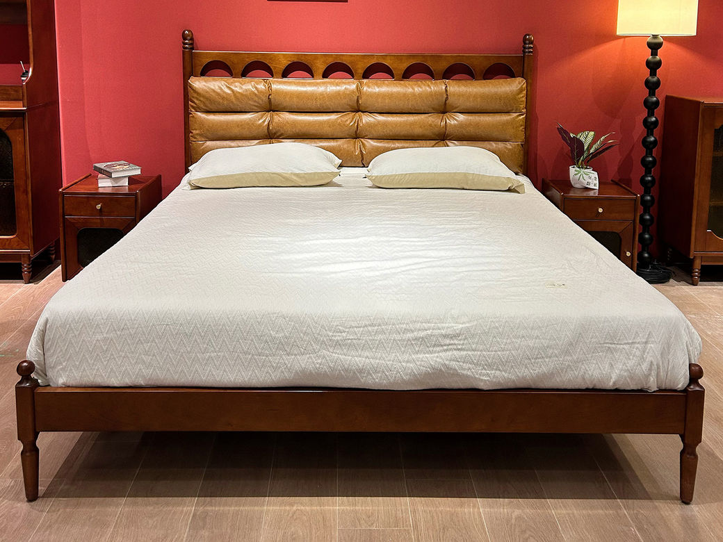 中古·森 网红 中古风 进口樱桃木+多层实木板+实木床板+仿真皮+高回弹海绵 1.8米床¥6044