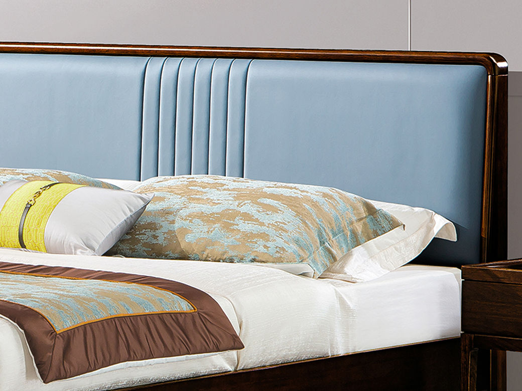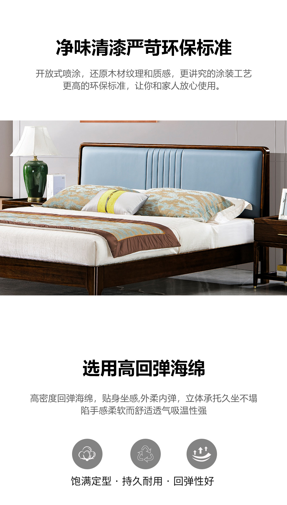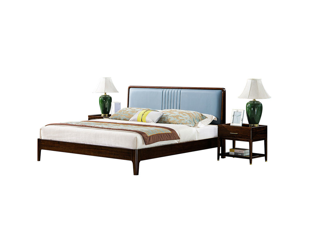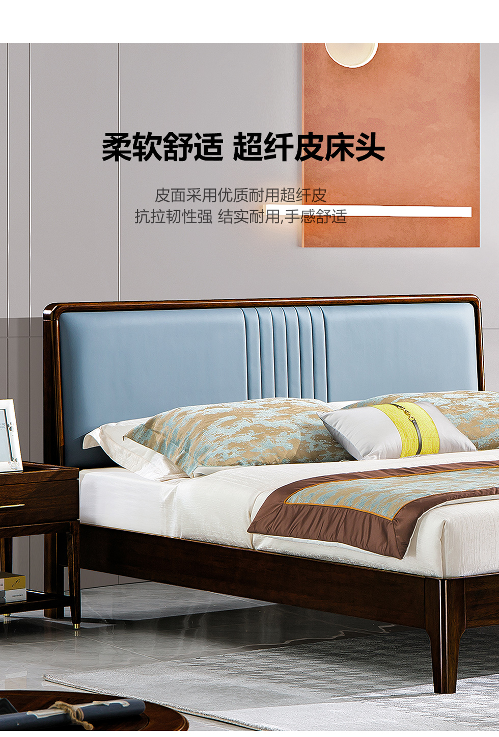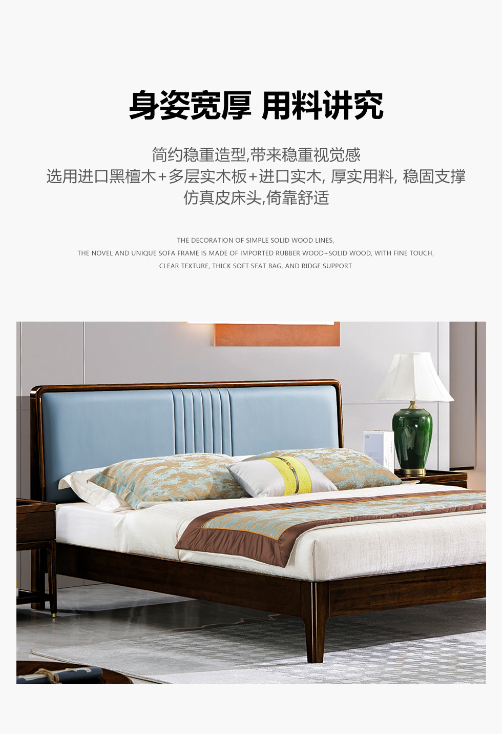 美檀家居 新中式 进口黑檀木+仿真皮+高回弹海绵+多层实木板+静音床板 黑檀色 1.8米床