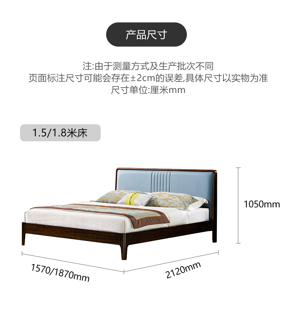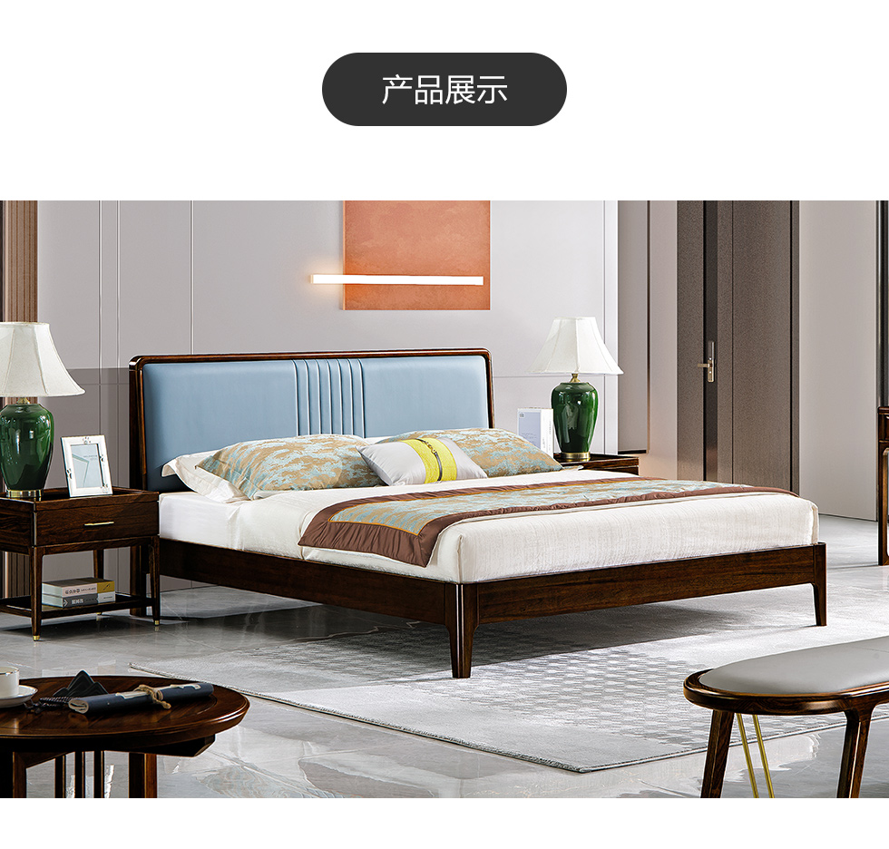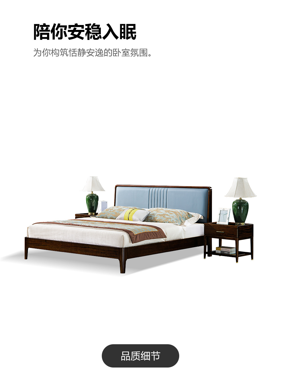 美檀家居 新中式 进口黑檀木+仿真皮+高回弹海绵+多层实木板+静音床板+电镀五金 黑檀色 1.8米床¥10243