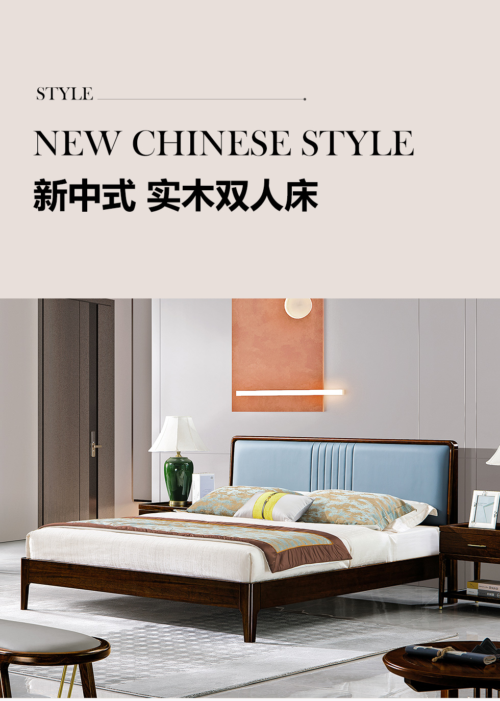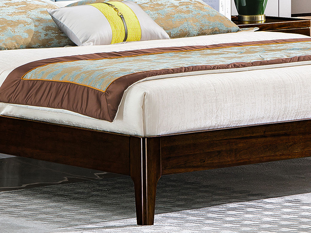 宝瑞·檀风 新中式 印尼金花梨木+多层实木板+木纹木皮+静音床板 紫檀色 1.8米床¥4236