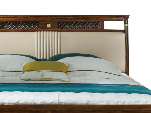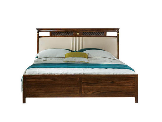 宝瑞·檀风 新中式 印尼金花梨木+多层实木板+木纹木皮+静音床板 紫檀色 1.8米床¥4236