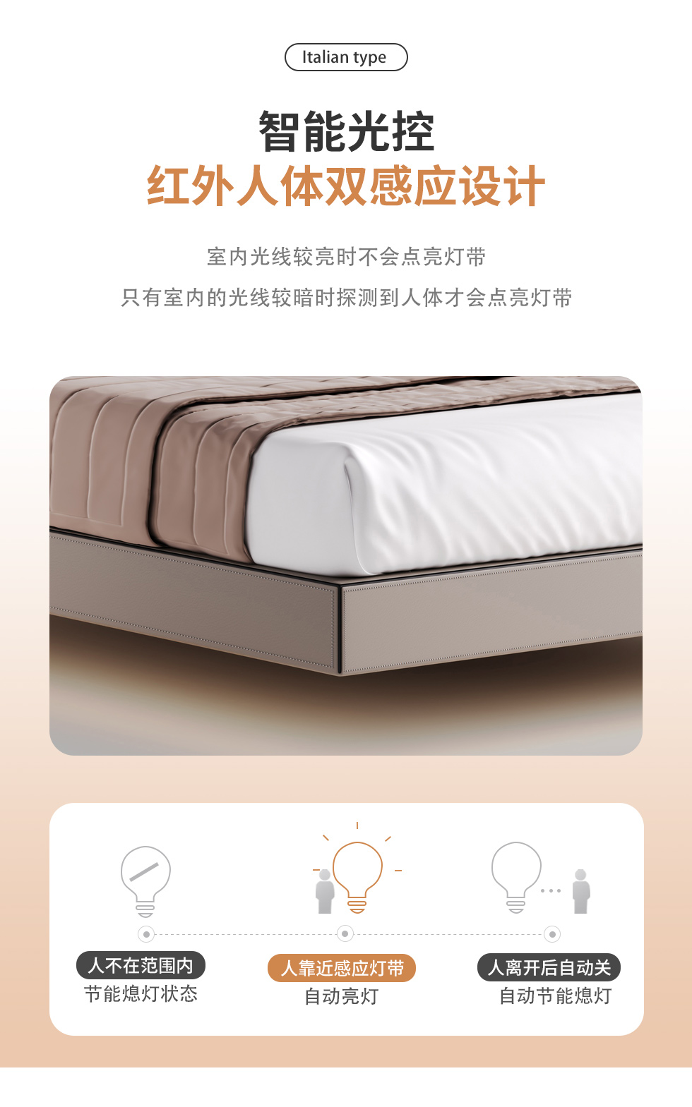 德卡图 现代简约 全头层黄牛皮 全实木整体床架俄罗斯落叶松+多层板+高弹海棉+紫罗兰海棉 1.8*2.0米悬浮床¥11652