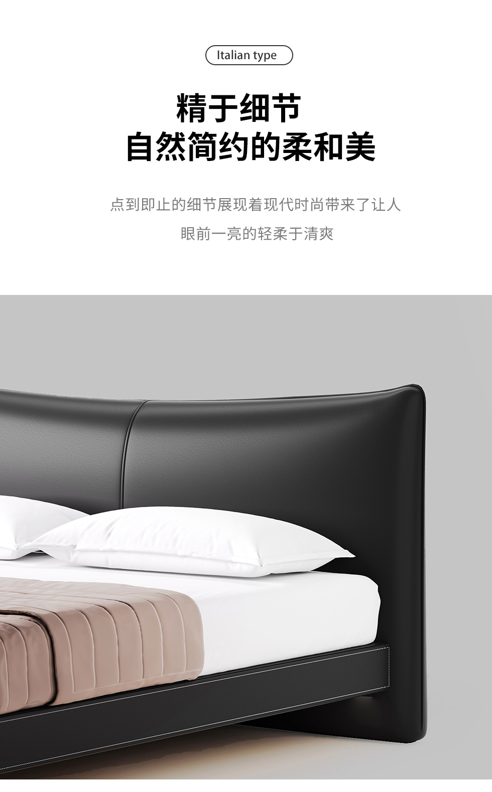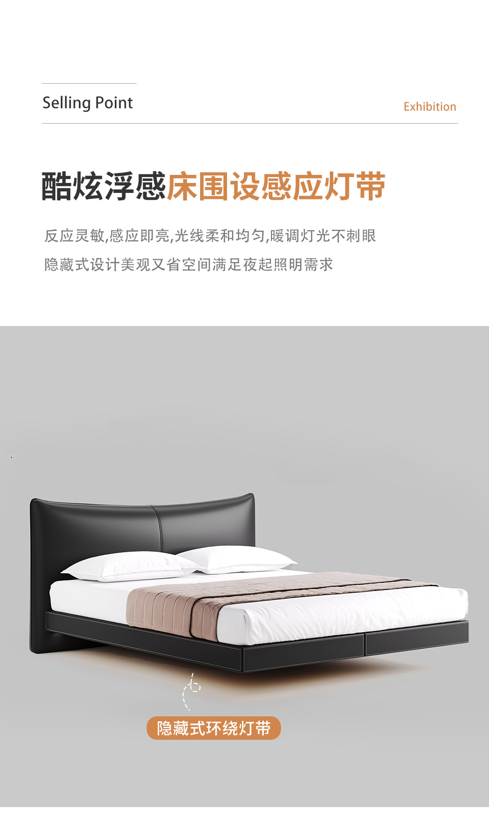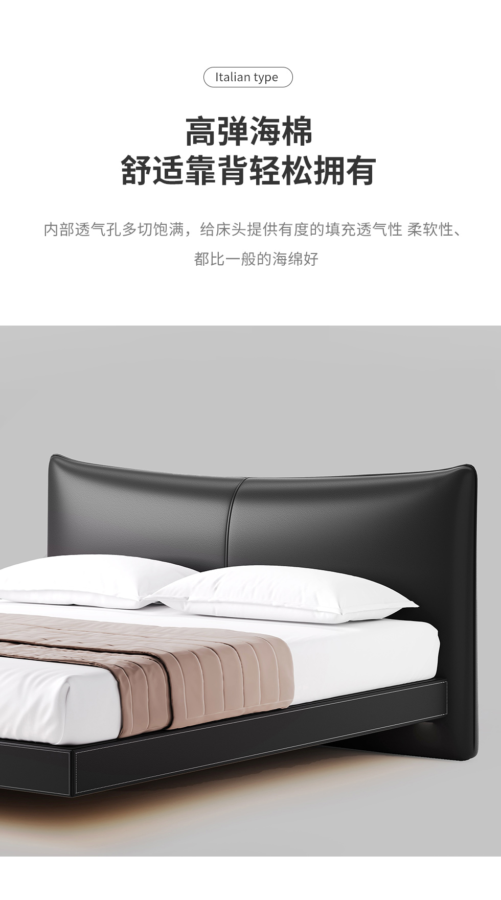 德卡图 现代简约 全头层黄牛皮 全实木整体床架俄罗斯落叶松+多层板+高弹海棉+紫罗兰海棉 1.8*2.0米悬浮床¥11652